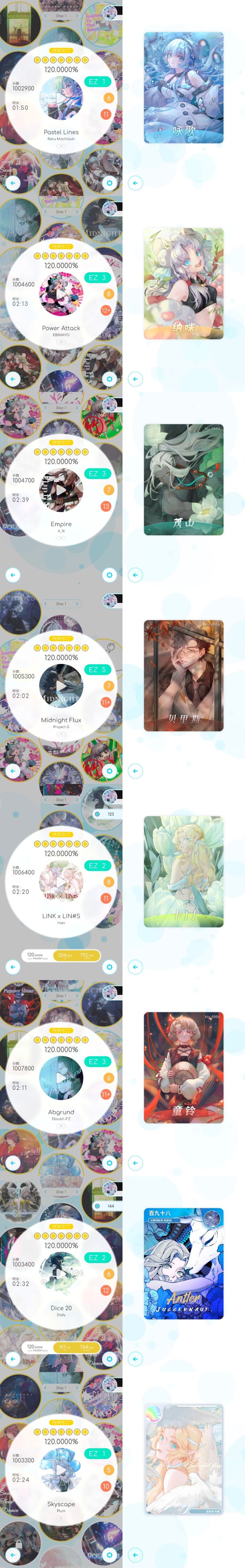律动轨迹Rizline 曲目卡片对应一览
