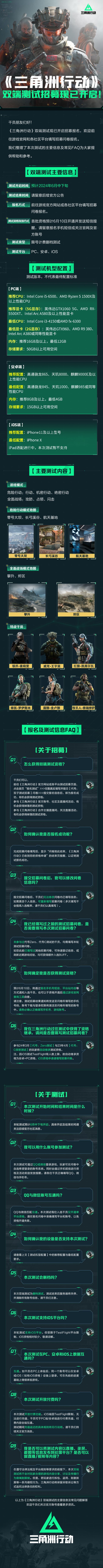 详细测试内容、测试计划、机型配置、资格获取方式请查看FAQ图片,感谢干员们的支持!