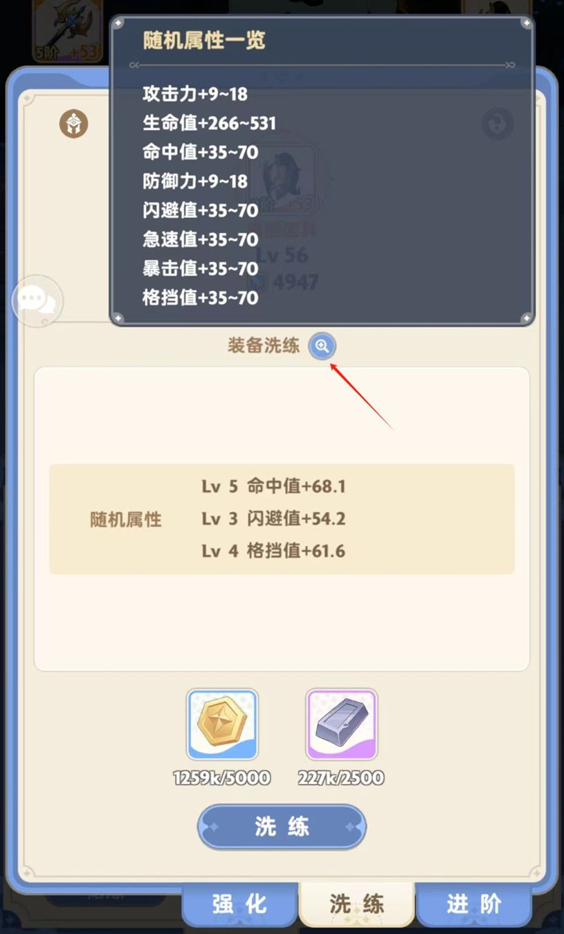 点击装备洗练旁边的+号可以查看能够洗练的属性,小伙伴们可以用来判断装备洗练结果的好坏。值得一提的是,装备的洗练没有上限,如果没有极致追求的话在洗到不错词条后就可以停手了,避免造成浪费。
