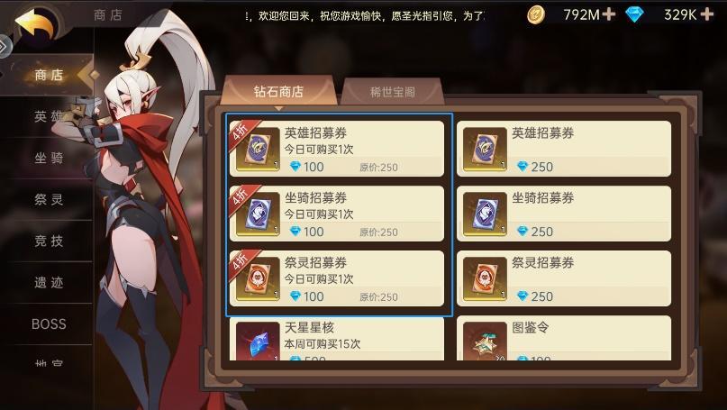 BOSS中的骑具与地宫中的专武材料是根据自己阵容选择的,大家根据情况来购买。