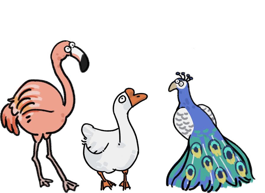 鸟类家族:无论是常见的母鸡公鸡火鸡大鹅,还是难得一见的孔雀火烈鸟,都属于鸟类家族的成员。他们长相形态习性各异,但有一个共同的特点是喜爱居住在一起,无论是越生越多的公鸡母鸡,还是总是在团队行动的大鹅和火烈鸟。而游戏中鸟类家族的成员也是靠共同的居住和行动来给我们赚钱更多的金币,当然如果你嫌鸟类聚集繁衍得太多,还可以引进老鹰,让他们吃掉过多的鸟类,保持牧场的平衡