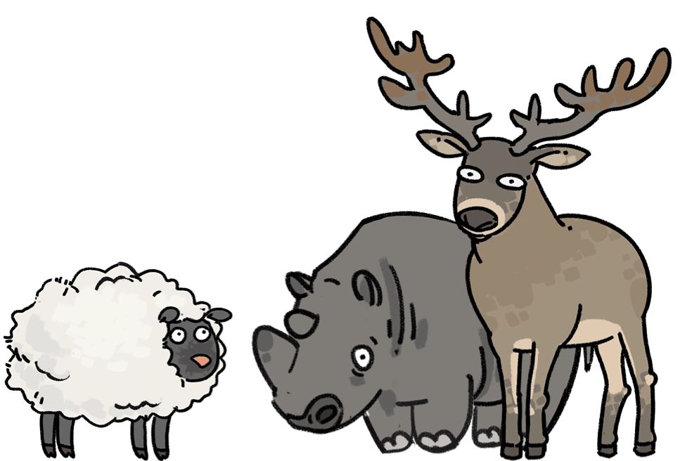 有蹄家族:小到奶牛绵羊,大到犀牛驯鹿,都是我们有蹄家族的一员!在大自然中他们不不停吃草默默发育,发展出庞大的种群,而在牧场中他们则同样能够持续的发育与成长,稳健地给我们提供源源不断的金币!