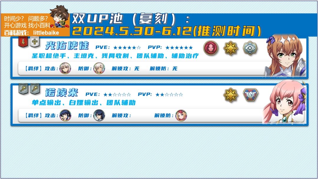 【(推测日期)5月30日】,双UP池复刻,光佑使徒、诺埃米。