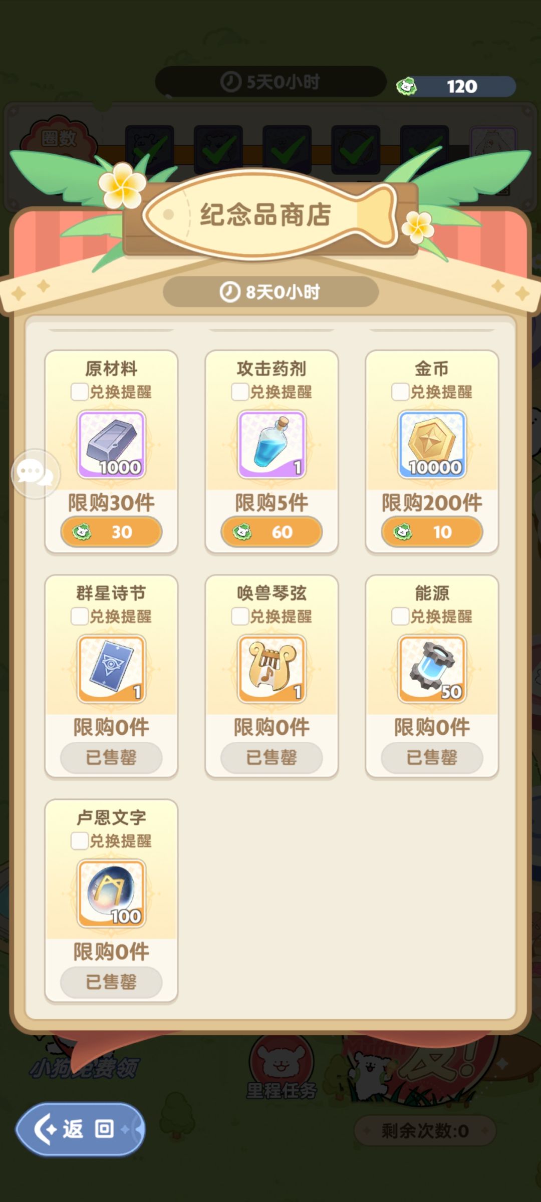 4.图7纪念品商店,就是这次小狗跑圈活动,这个的话我建议大家先把抽奖券,抽麦乐兽券,卢恩文字(抽招式券)拿完,后面再拿能源 宠物碎片就行,其余的估计也就没法换了,哈哈哈。