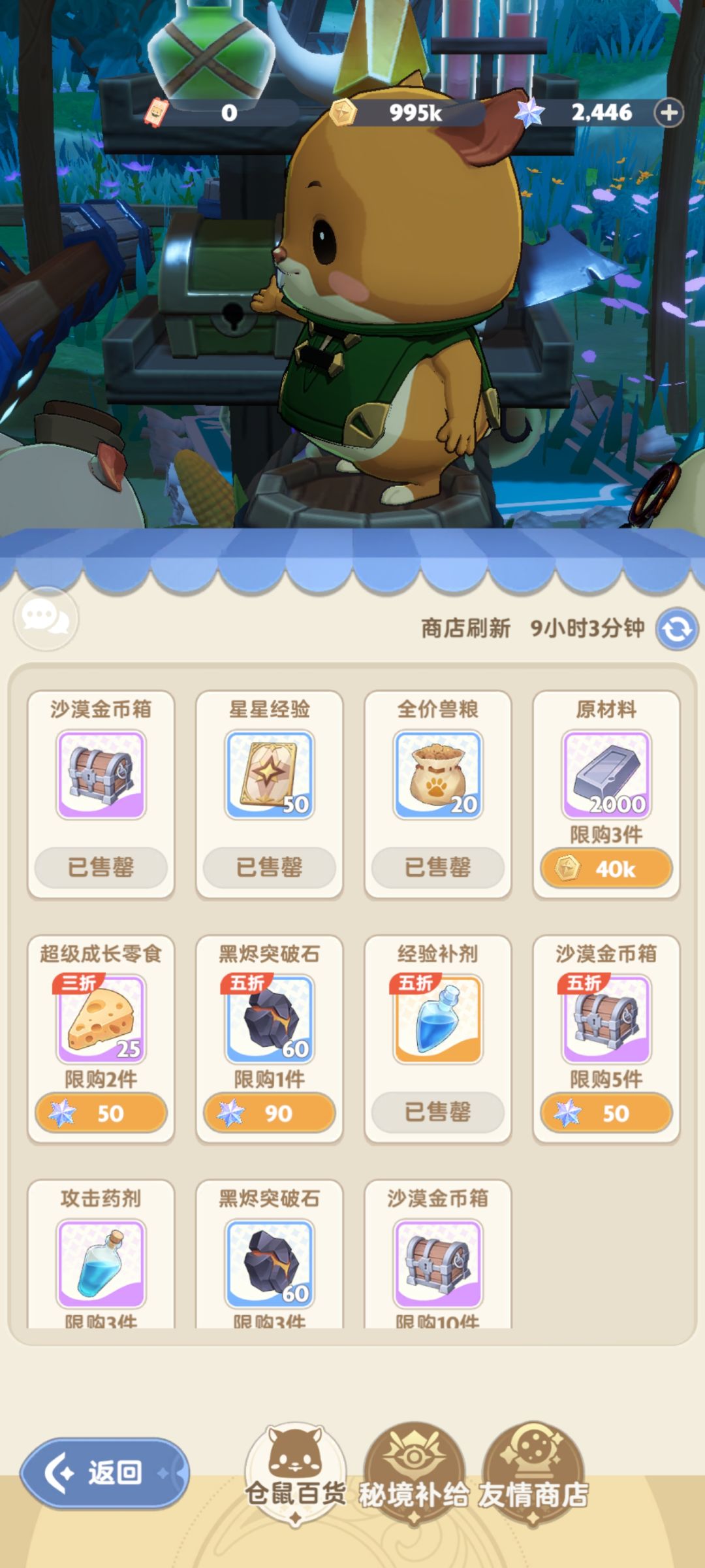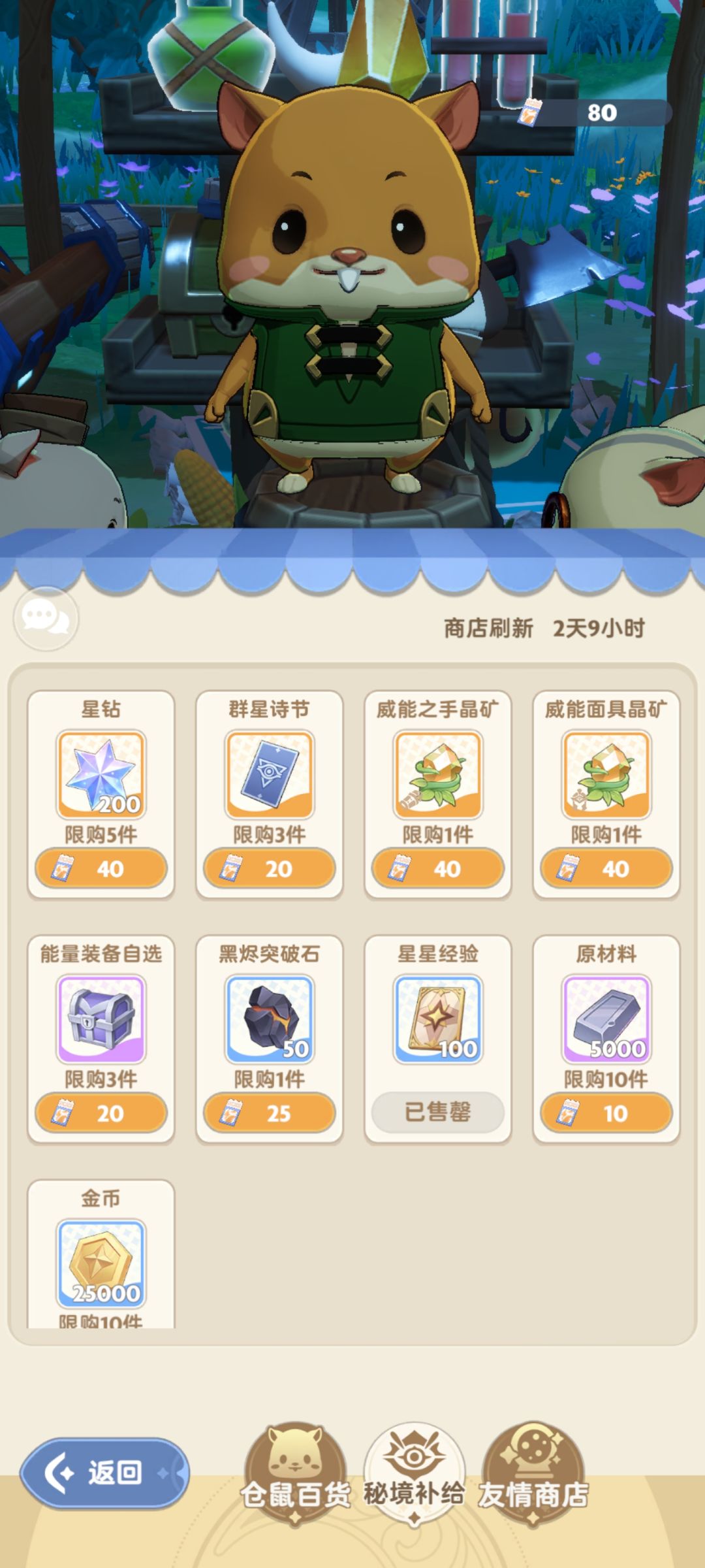 2.图5就是仓鼠商店,金币后期会溢出,前三个无脑换!其他星星石头如果卡武器练度和麦乐兽等级的话,月卡党可以换下,零氪不换!