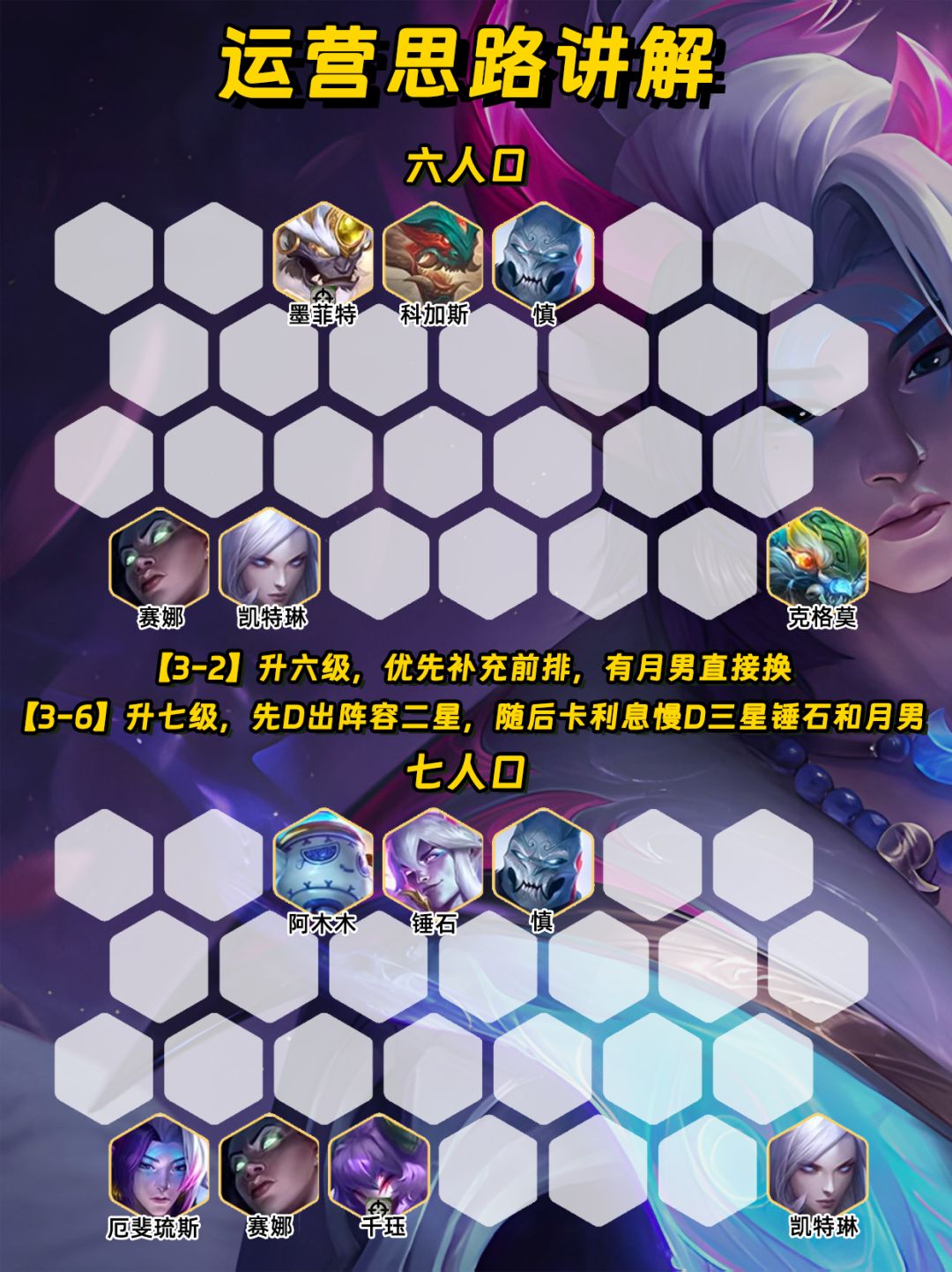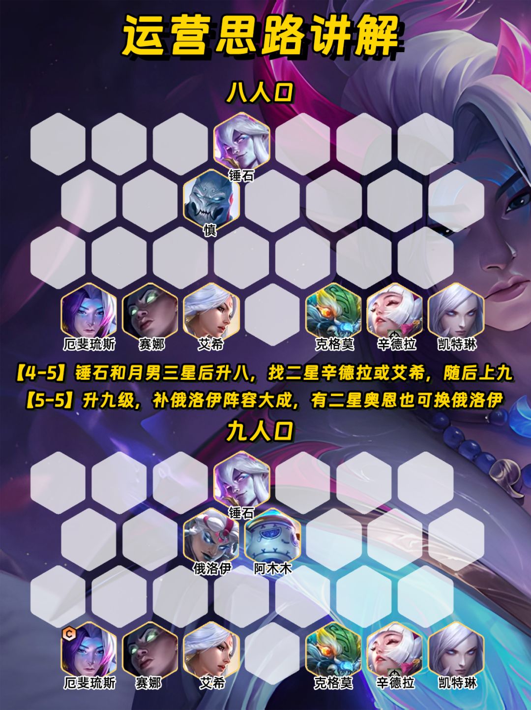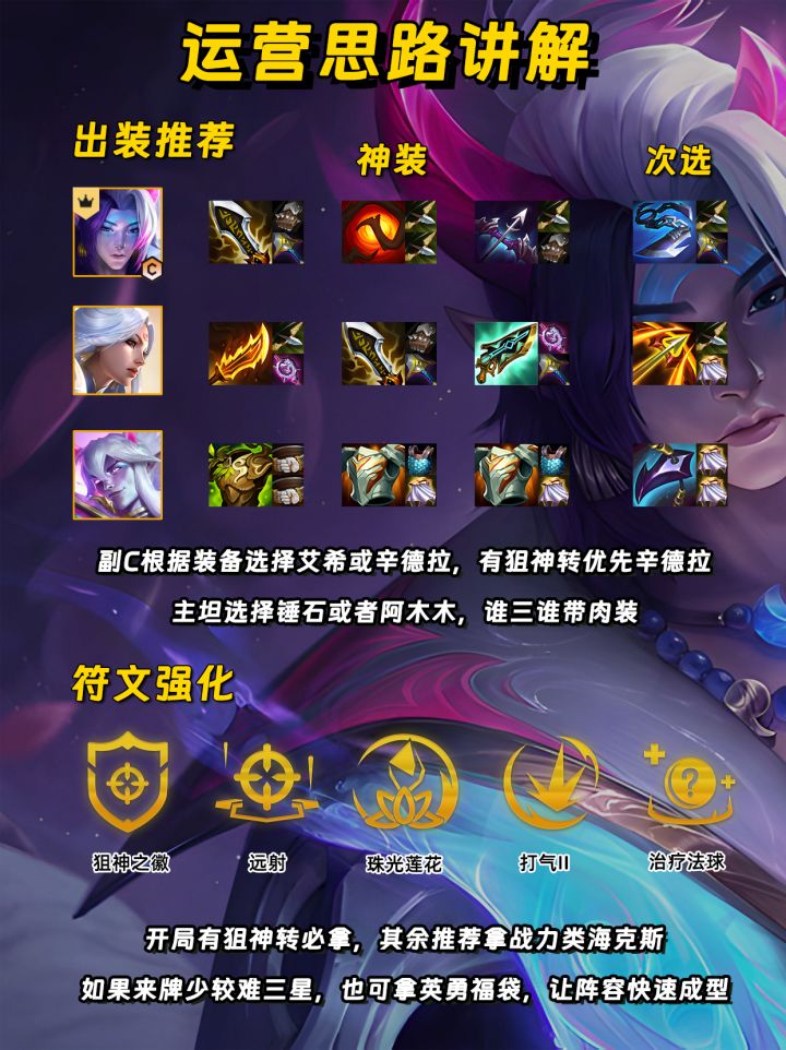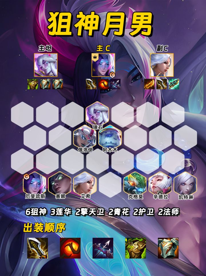 如果没有狙神转就开4狙神4护卫,莲华后期连锤石和辛德拉。