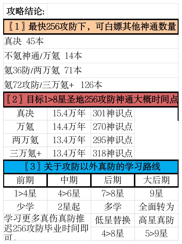关于何时学真防真伤,看开头第一张表格中,神通划分与属性,神识碎片的结余产出都是在后期阶段。在神通的前中期神识碎片依然紧缺,结论中额外可学习神通数量,虽然在总时间线>256攻防内属于最快进度。但至少前中期尽量除攻防外少学其余神通