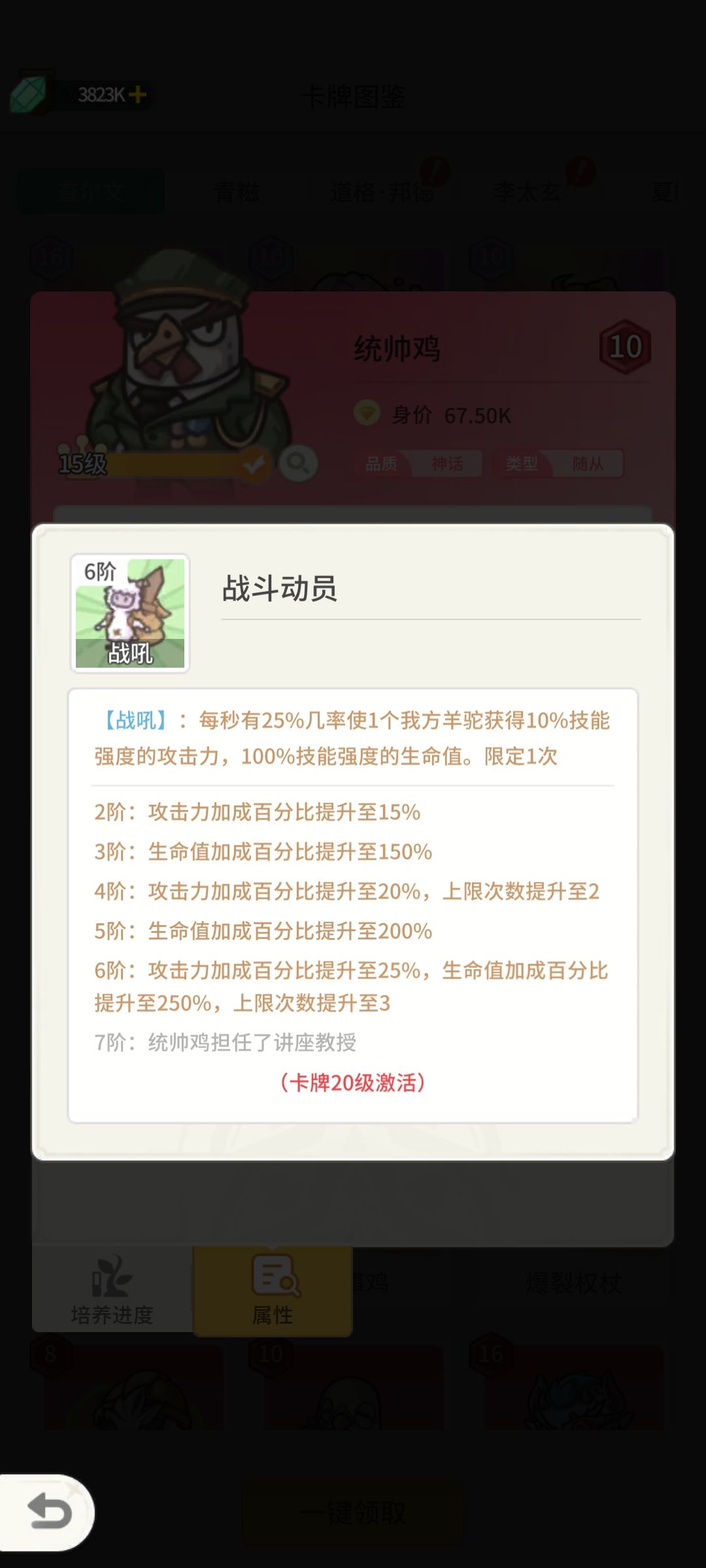 统帅鸡:●提高了攻击力加成百分比,去除了加成生命值的效果。●技能从每秒有几率释放调整为一次性释放。