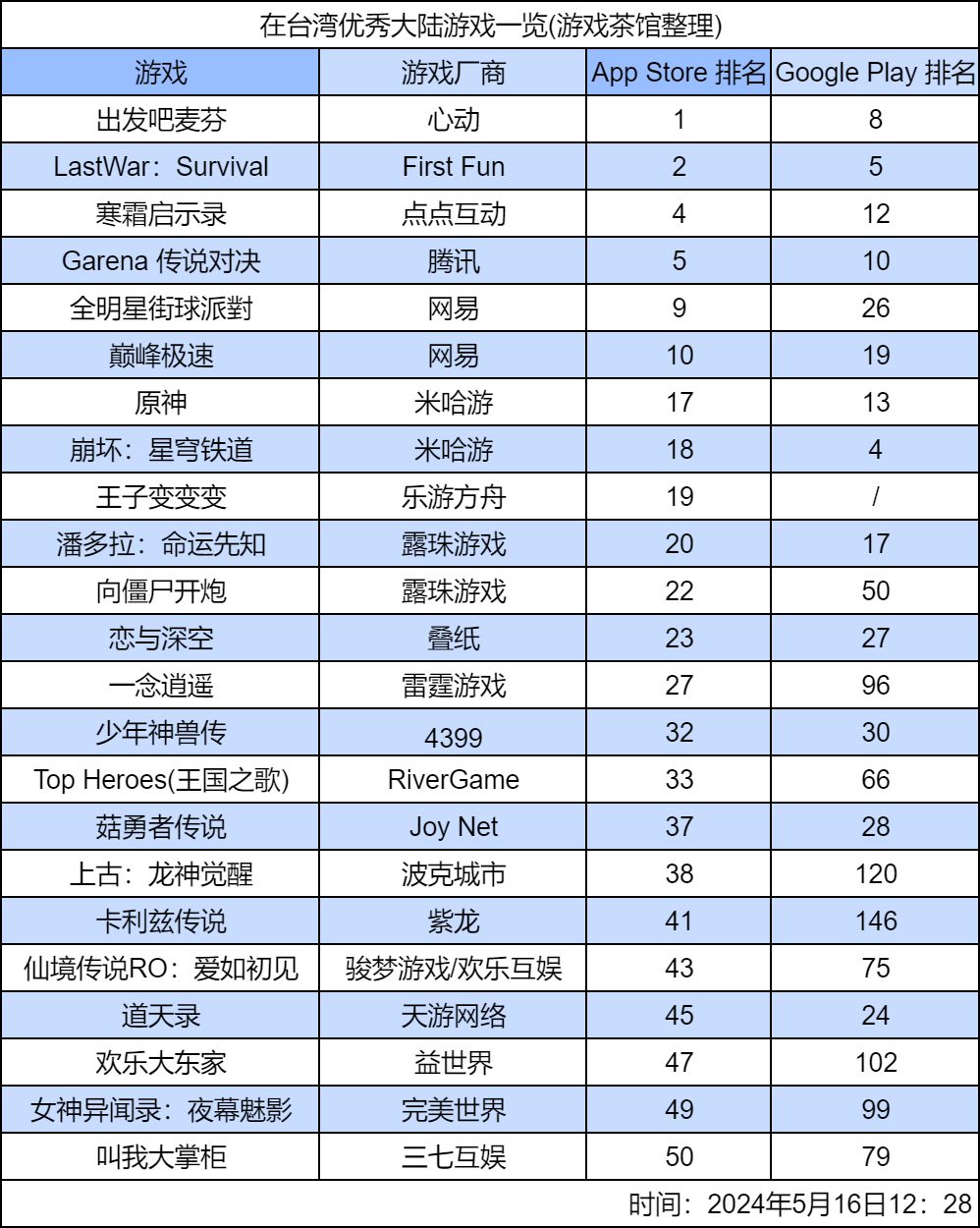 经整理,在台湾上榜大陆游戏如下:
