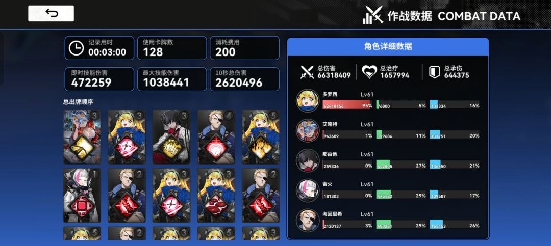 这套阵容是真舒服,出了新ur才升到50级,词条都不齐,装备只有拿弃牌雷的模拟星辰,其他装备都是1级,就已经跟我刷两个月词条的弃卡雷速度相当了。