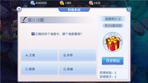 乡试:玩家通过丞相或指引处进入乡试界面,答对科举题目后获得奖励。