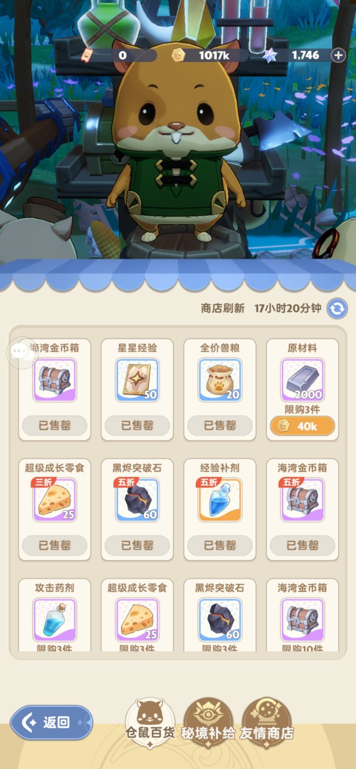 首先,商店资源,第二列五折是必须要购买的,上面的金币,经验,兽粮看个人需求,不过一般是供大于求…