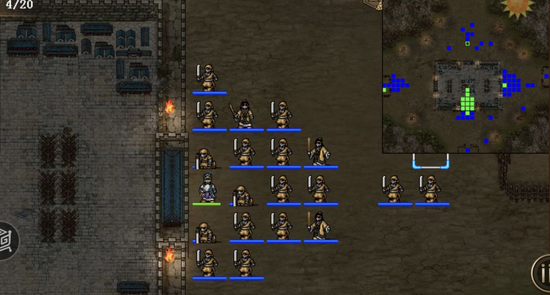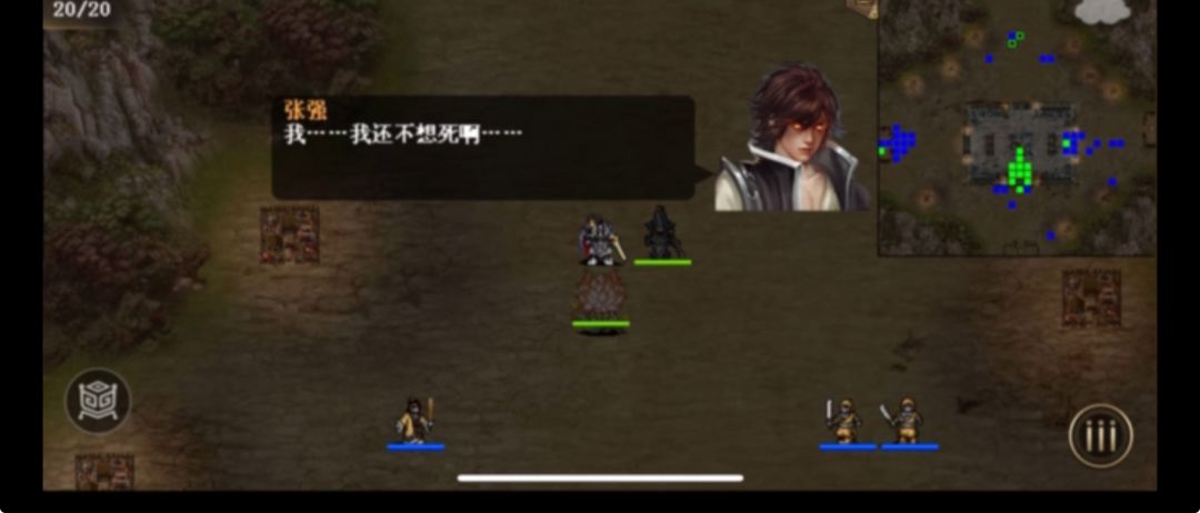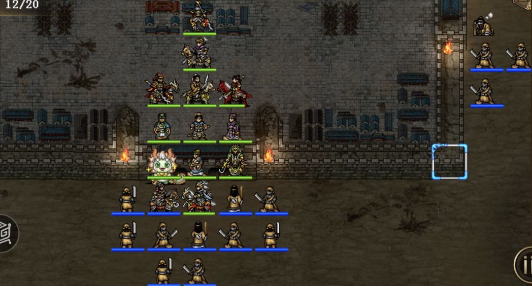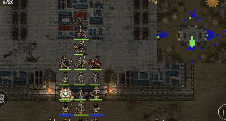 从第四回合开始,一直点回合结束,其中第10回合注意上路武将自己吃血加满,或者回城,11回合再出去,第11回合刘备白虎,第1-6回合和第16到19回合,刘备可视全员情况再放两次白虎。右路一般情况20个回合都不用动,有一定小概率会出现张宝可能进城的情况(见我发的视频),需适当移动阻挡,后期即时张宝进来也可以不管了,毕竟他一回合只会杀一个,酱油多的是,当然也可以把他砍死。下路糜竺在中间,法师蓝耗完死亡之后,张梁就只会过来砍糜竺,第十八回合左右,刘备往上走,上路武将往上移动,引出张强,刘备第二十回合秒杀之。