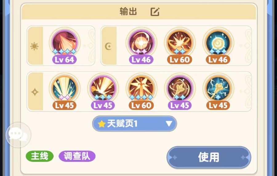 输出技能搭配相对会固定些,推图和副本输出都可以用这套,除非特定boss需要驱散buff,可以在战术技能位带上净化术,净化术会在被动佩戴执行官的情况下将净化队友debuff变为驱散敌方buff。