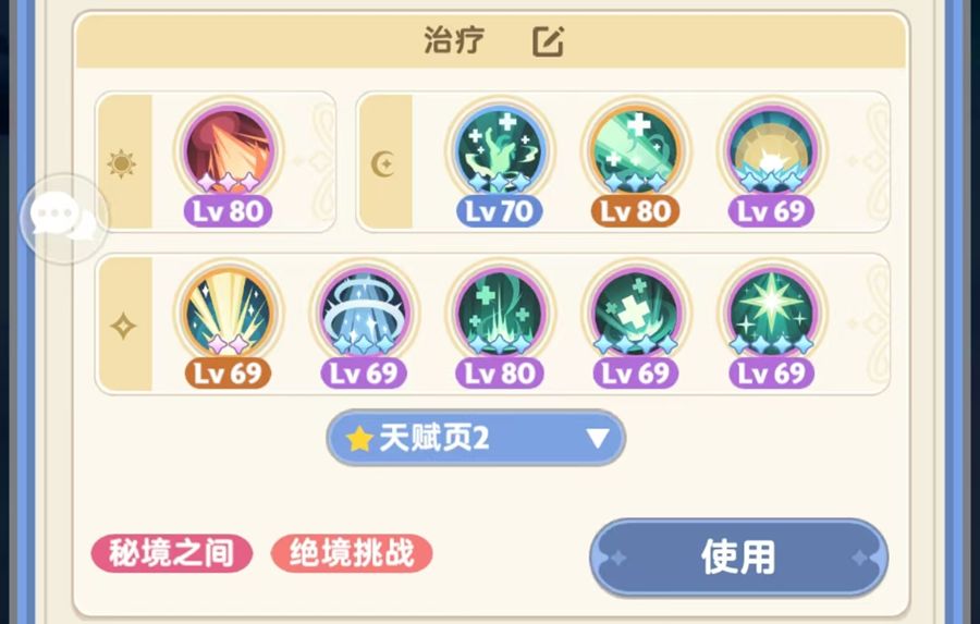 治疗技能搭配会复杂些,一般情况下恢复会常驻,剩下两个战术技能位需要根据boss的技能进行调整。如果boss会对我方队友施加debuff,则需要带上净化术;如果boss会对我方全体造成单次巨额伤害,则需要带上光明屏障;如果boss会对我方全体造成持续性大量伤害,则需要带上神圣治疗;如果以上都没有,则可以带上治疗术+群体治疗这种万金油搭配。