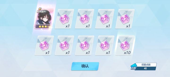 看了新池子,正好又是我缺的学生。刚抽完几发十连,就听小组里的人说,下个月有水星野。有点后悔。不过这次学生又增员了也是件好事,也没有用到招募点数。我已经在尽最大努力攒石头了,最起码的,我不希望用到招募点数这种东西。