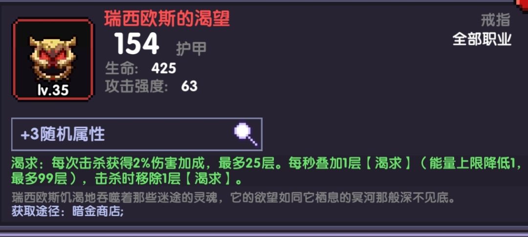 由于局外暗金带什么都不会影响局内的祝福,所以基本按照大秘境的带法带,此外推荐装备戒指【瑞西欧斯的渴望】,对群叠加的50全伤同样能用在boss房