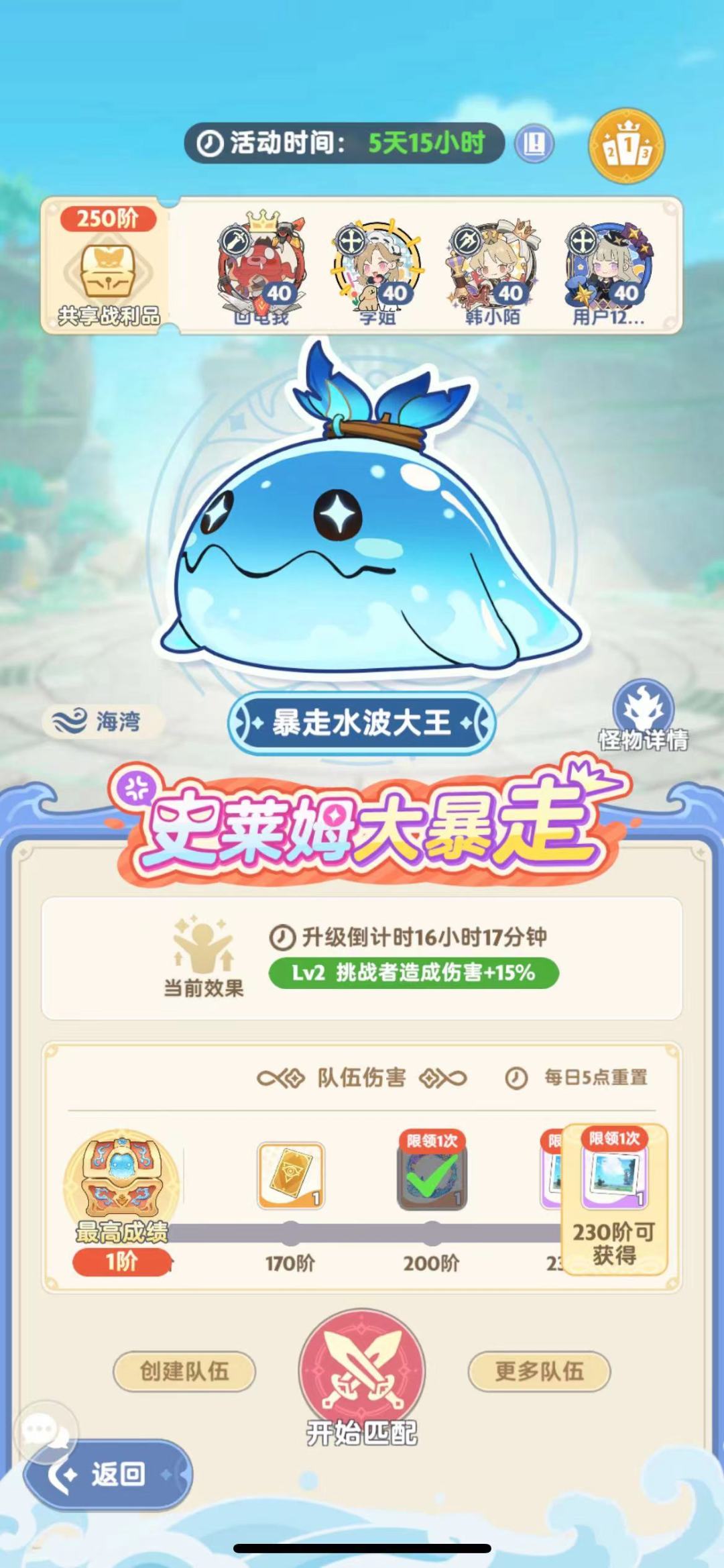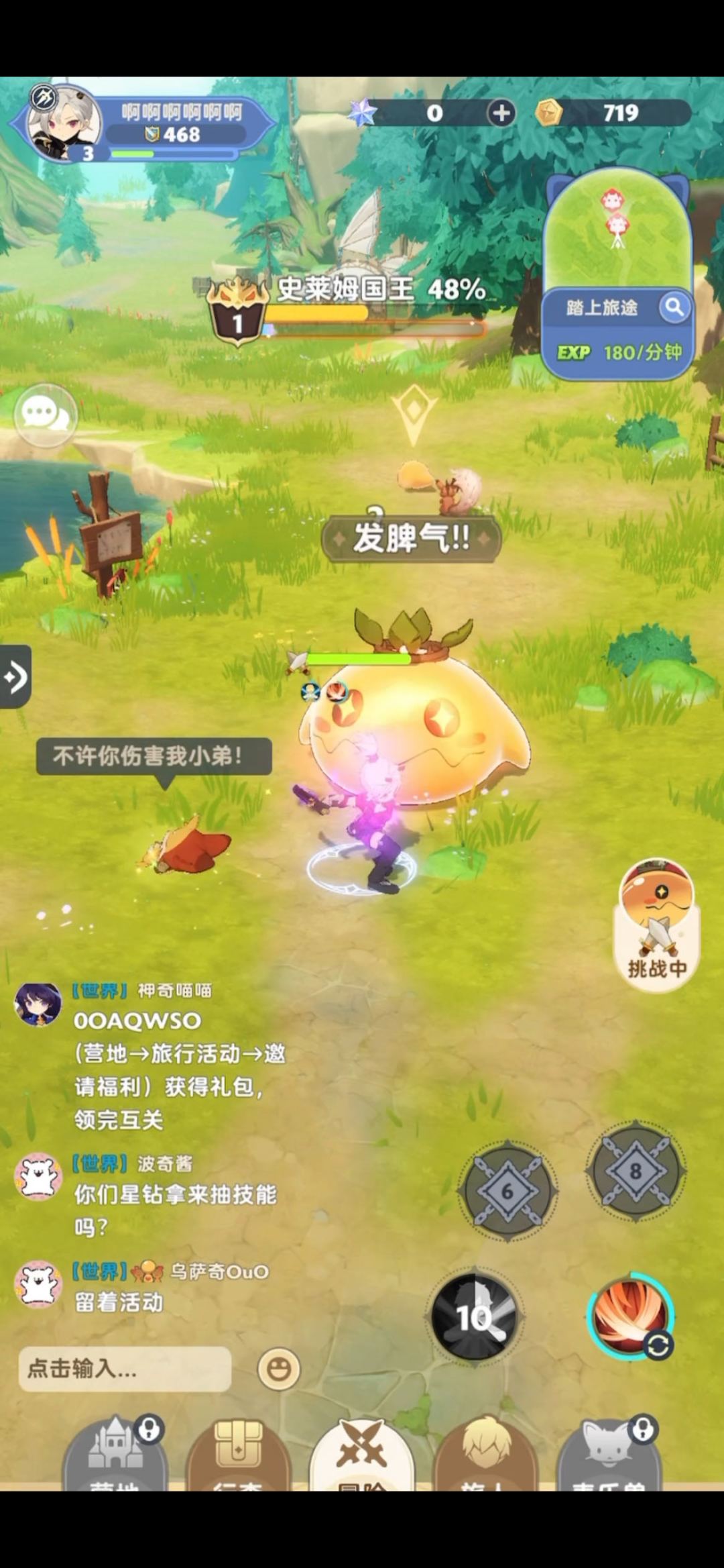 -10级以后开放组队,最好找(抱)个(紧)搭(大)子(佬),经验和金币会加5%。把技能换成自动就不用一直盯着冒险页面了,不过每个图第一次打boss和切换新地图需要手动。冒险关卡推的越快,星级越高,给的经验就越多,最多3星加15%经验。