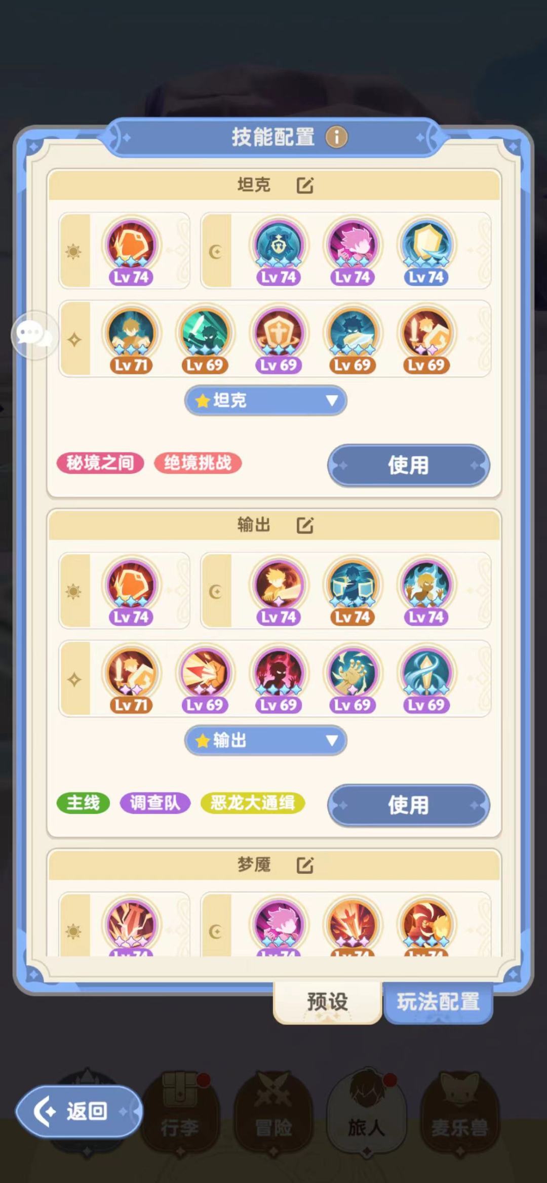)。-把主线和秘境的技能预设一下(抄下图的作业),方便18级打秘境,花点时间了解一下技能,特别是主动技能。