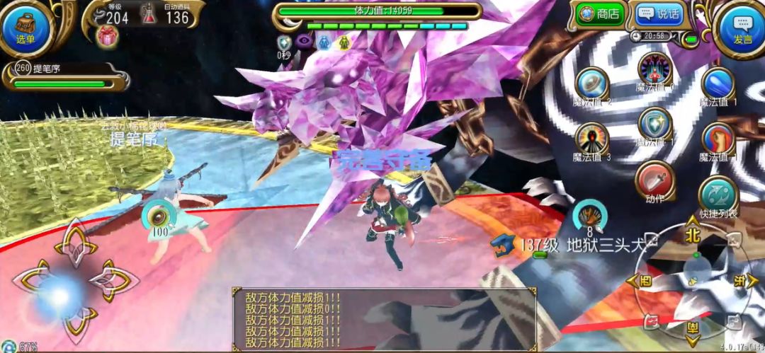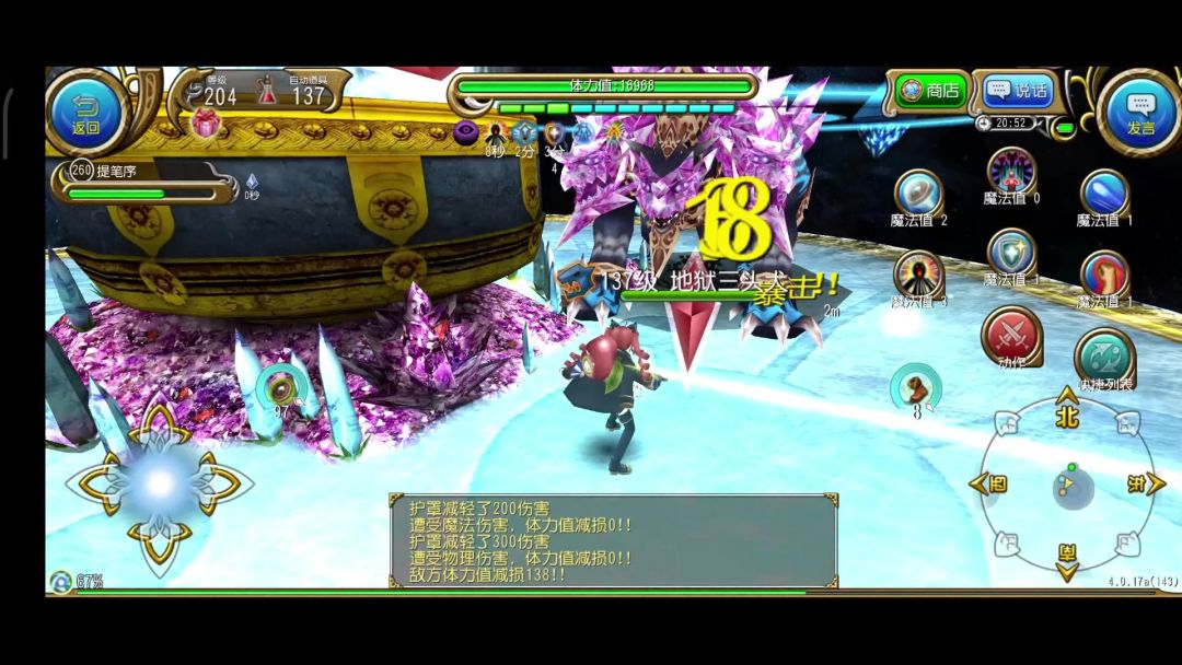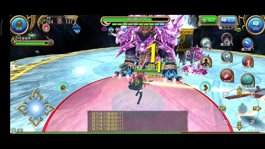 行动模式——4,大红圈的魔法伤害,水属性下造成冰冻、火属性下造成着火