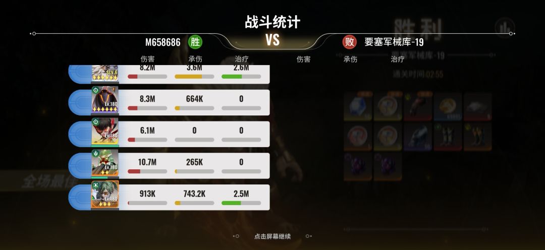 ps.上图都是我今天刚截的,为了避免boss最后一轮之前死掉我把关羽装备下了,所以最后差点伤害,按照之前实战经验,狮子给出最后的波纹之后boss差不多就噶了,总之这套偷鸡阵容生存没有问题,主要是练度要求能在时间结束前打死boss。