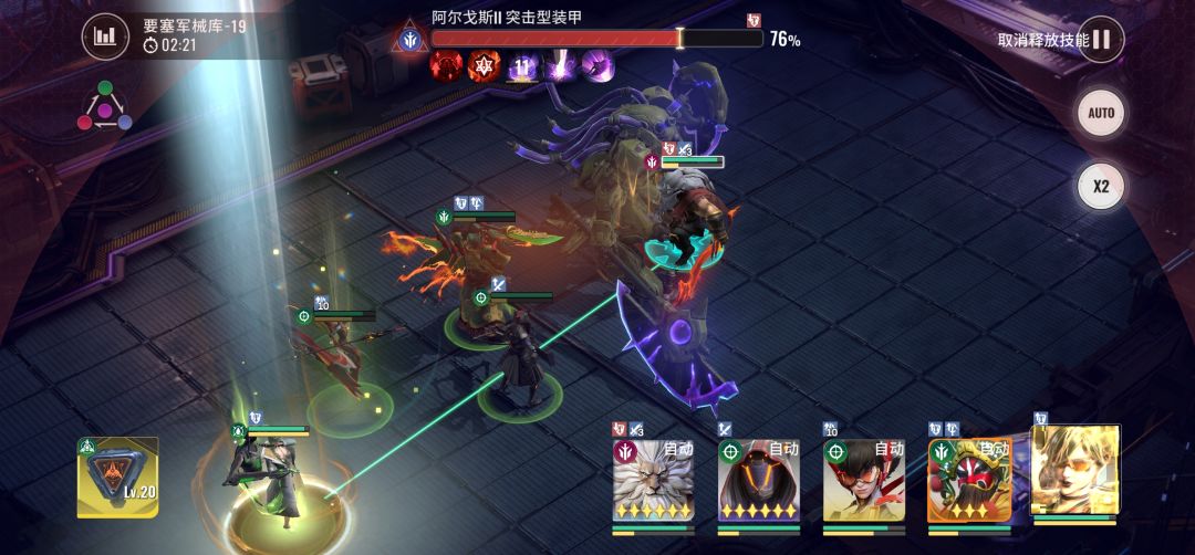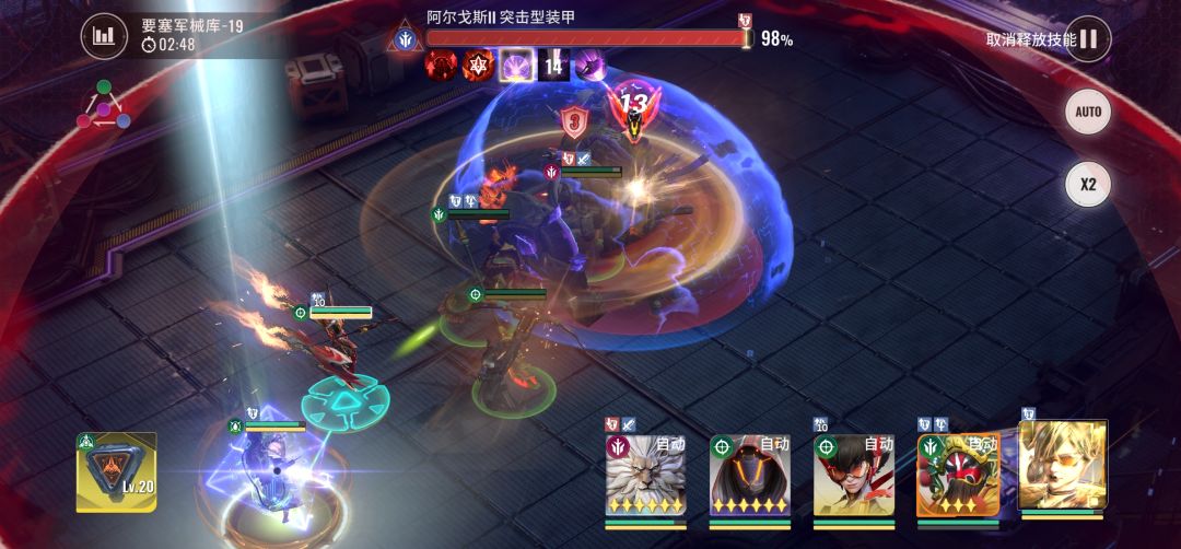 首先一号位狮子站位是固定的,吸引火力,全局不论你怎么窜boss都只打狮子;其次打针姐最后一排站位是确定的,打针姐按照进度白嫖到三星不是问题,因此比哪吒和幽鬼更能扛一点,boss每轮开盾都会放两次“能量紊乱”,分别会给距离最远的两名角色,按照这个站位,第一个紊乱会给哪吒,第二个紊乱会给打针姐,通过卡盾操作可以保证后排全部存活。