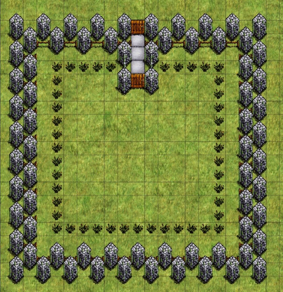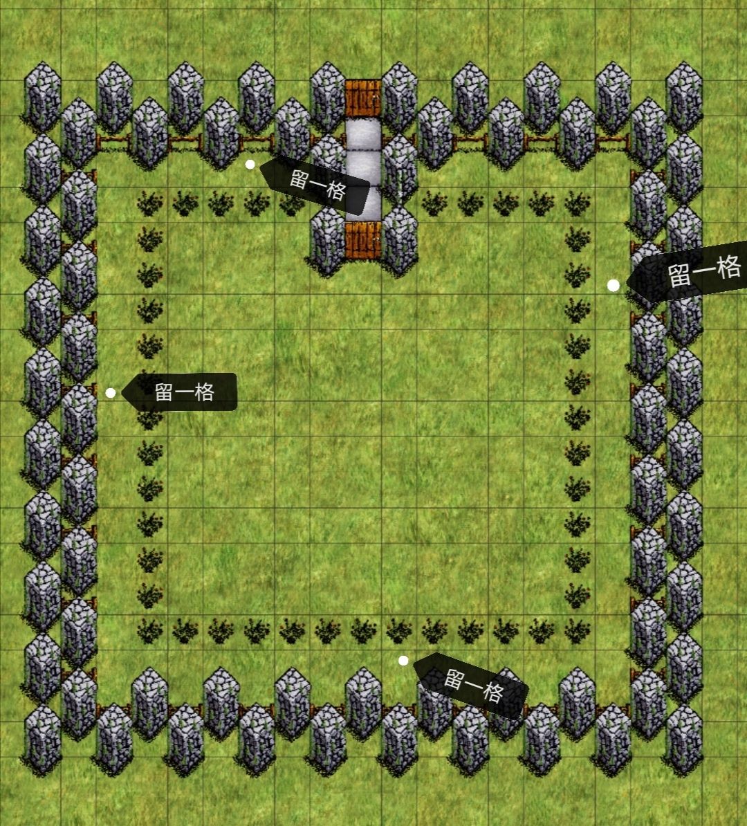◎双层墙➕一圈阻碍移动物(玫瑰 树 甘蔗 竹子)