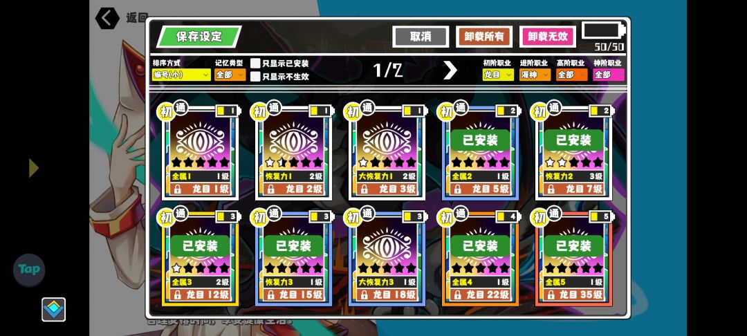 初阶职业选择龙目,提供高恢复和高回血,记忆主要选择全属性加成和恢复力加成,此外一阶我认为最重要的记忆是龙目专属记忆全属10