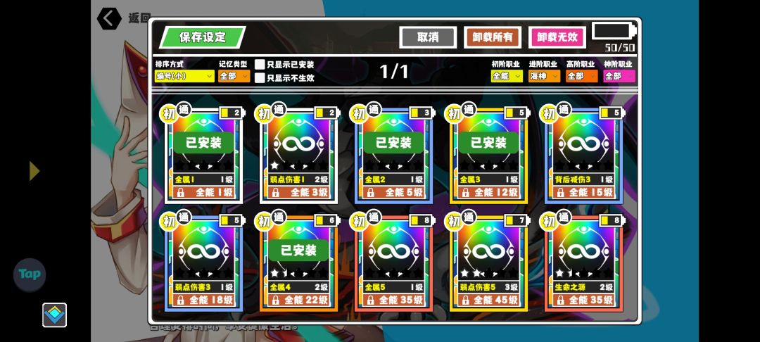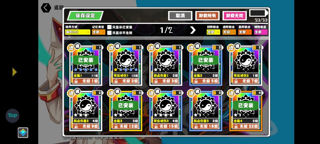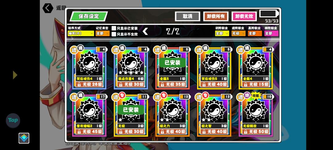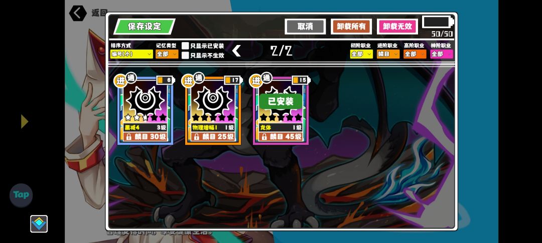 进阶职业选择无极,堆高所有属性,主要携带的记忆也是全属性加成,比较重要的记忆有麟目的龙体和无极的无极