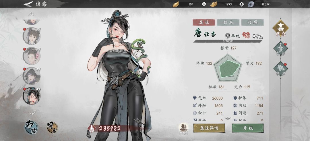 ps:这测的策划是认真的吗?唐让杏的基础属性尽然是加臂力的???