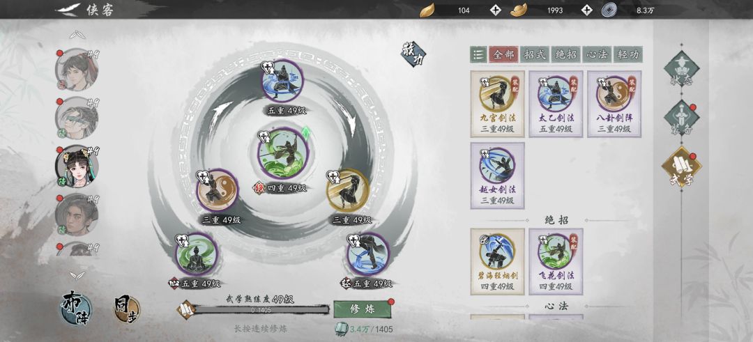 轻功八步赶蝉的每个阵法+20%内劲的特效也有不错效果。