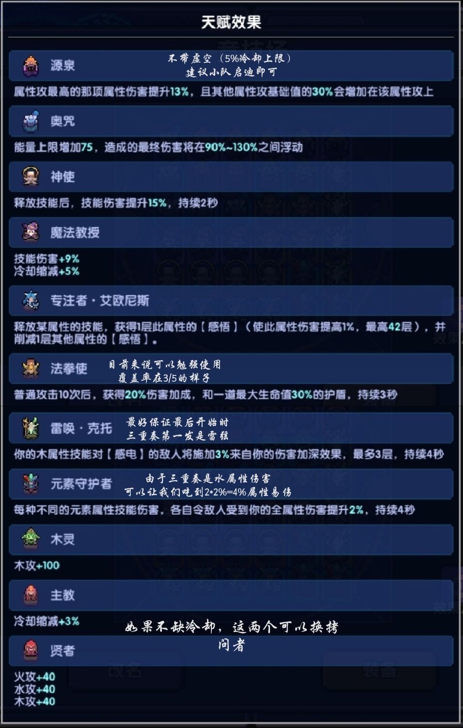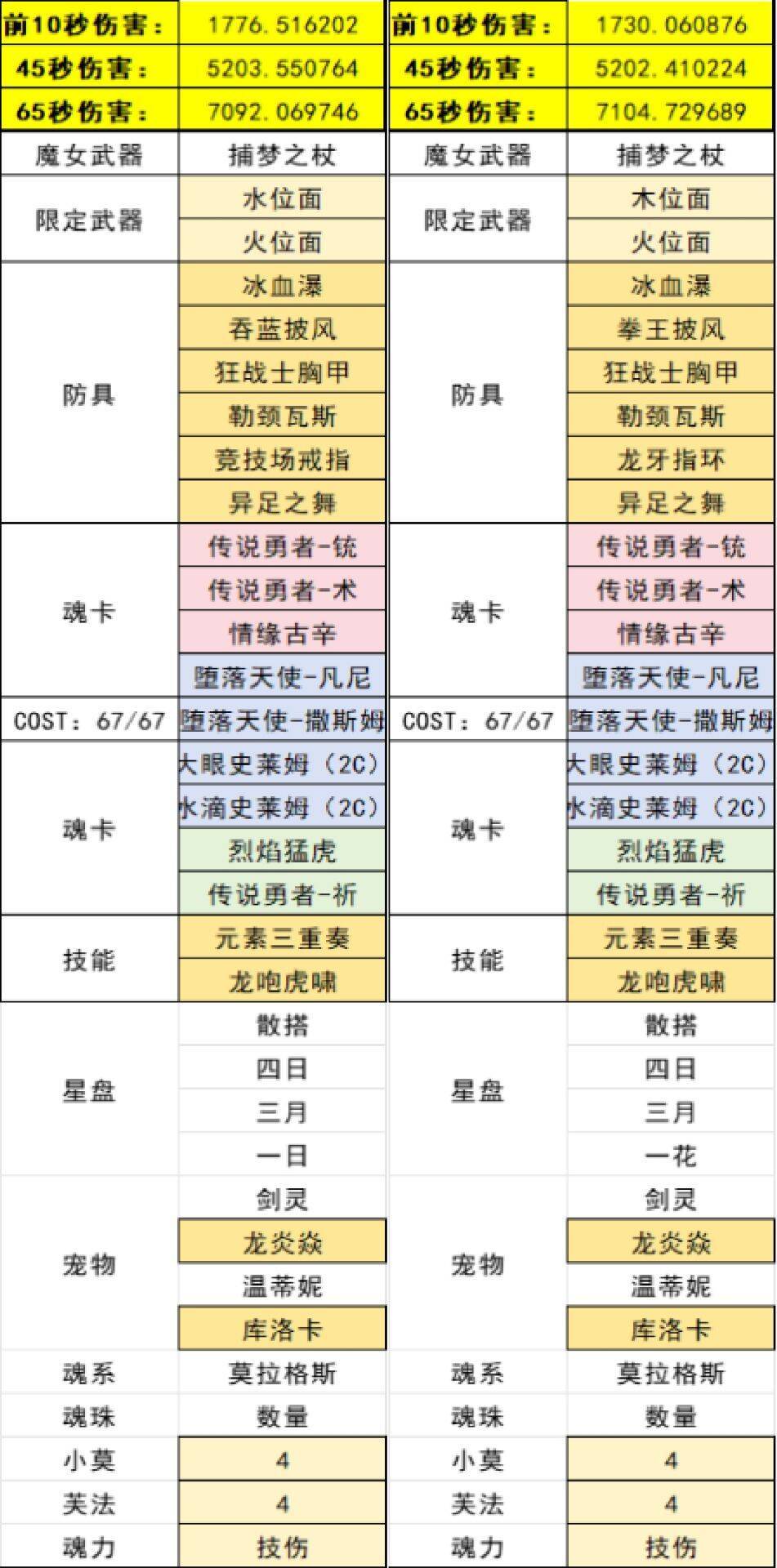 接下来我以木火位面为例,展示搭配: