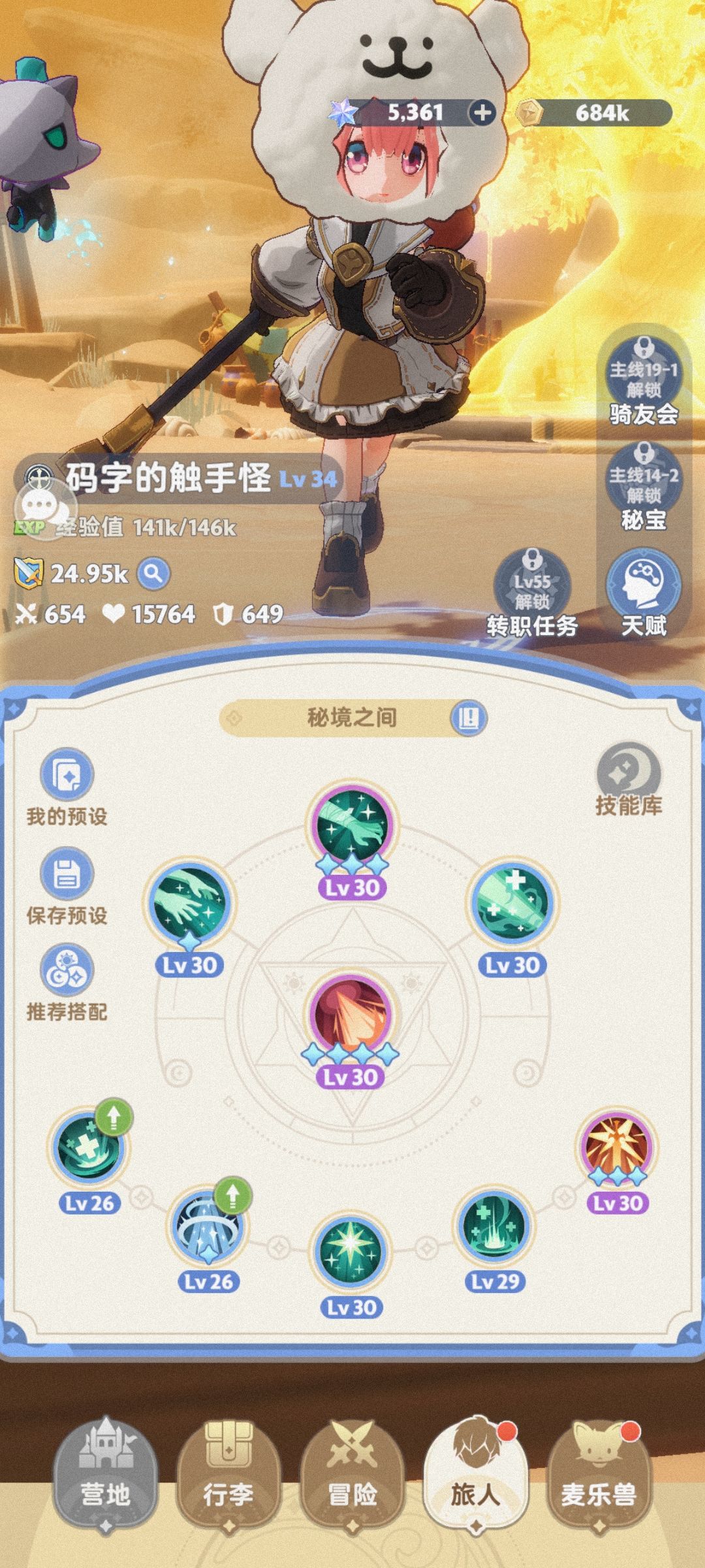 然后进入旅人界面在没有开始打怪使用技能之前将不需要的技能替换为减伤技能