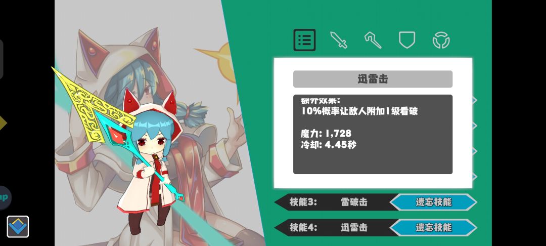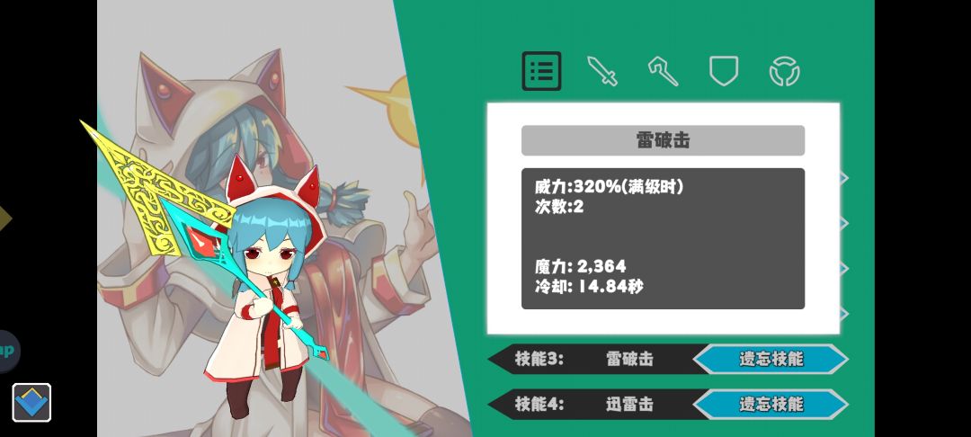 我选择了勇气一(有勇气二换勇气二)配合迅雷,双雷破,选择雷破和迅雷没什么重要原因主要是因为三阶19区王掉长枪,又恰好掉给雷伤和全属性的核心这个核心很适合白璃,就顺便选了雷系技能吃点加成,技能可以随便切换你认为合适的技能