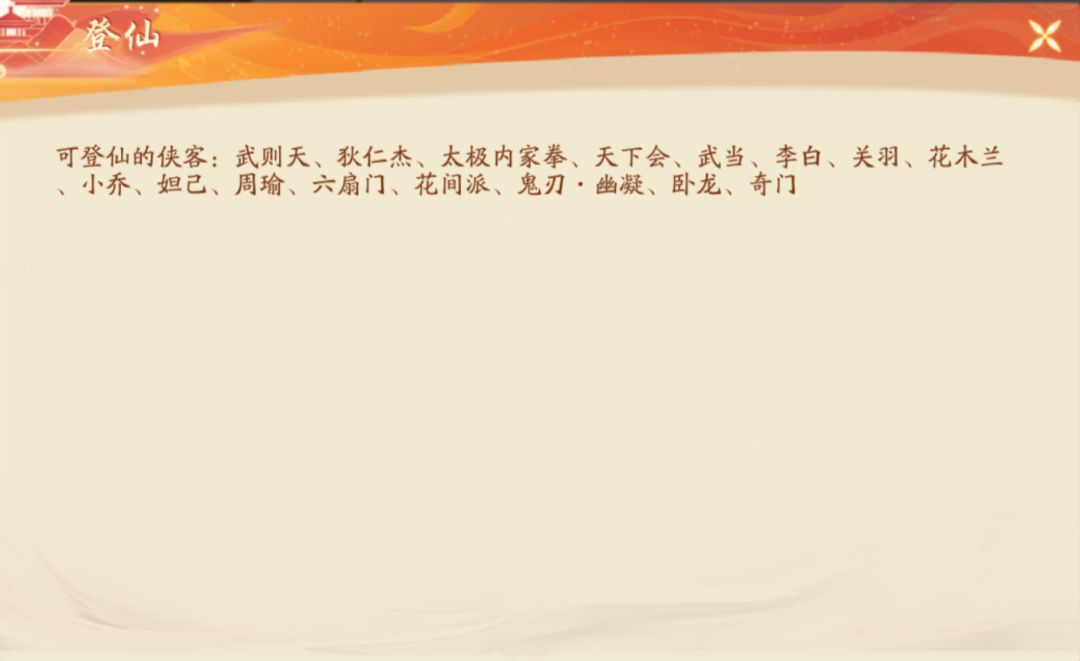 【侠影奇谋】登仙侠客技能介绍及登仙推荐