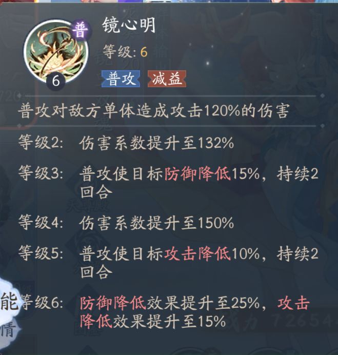 等级 5 :普攻使目标攻击降低 10 %,持续 2 回合