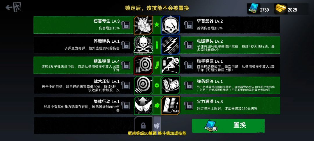 有的技能要搭配用才强,像精准弹夹搭配火力满溢