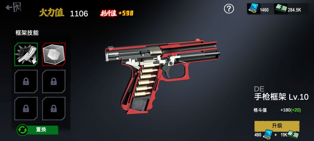 手枪优先升级加攻速的部位,因为手枪攻速火力值加的多。