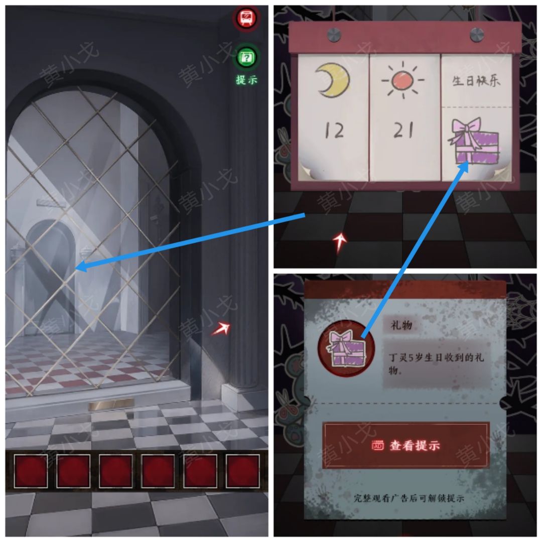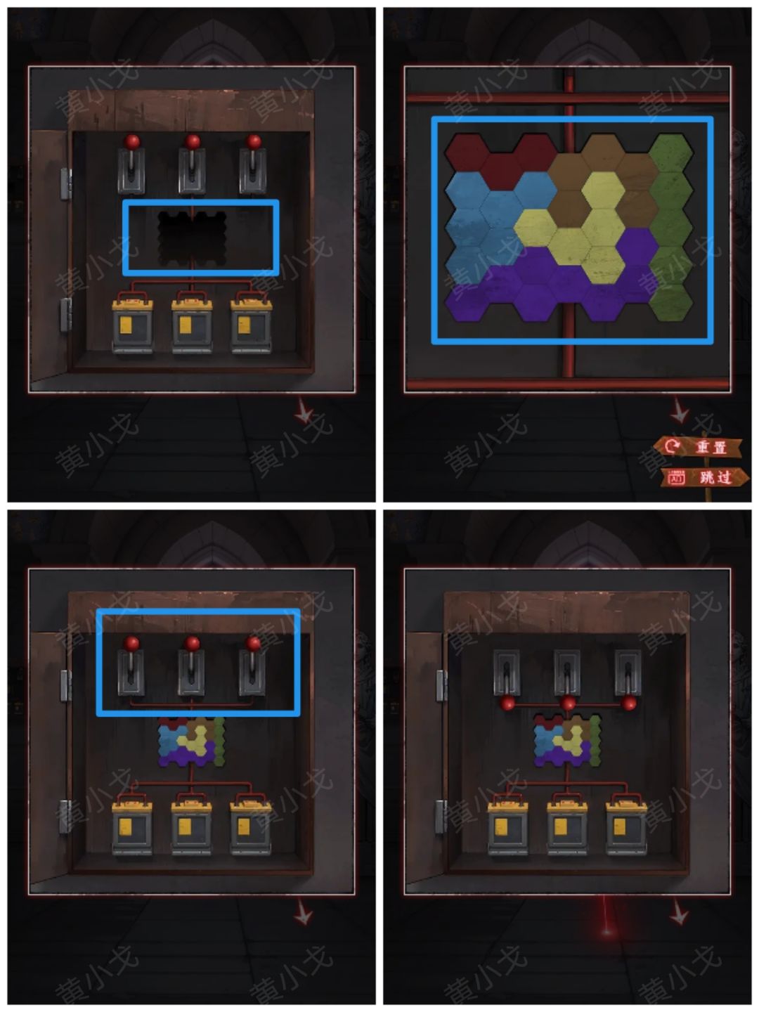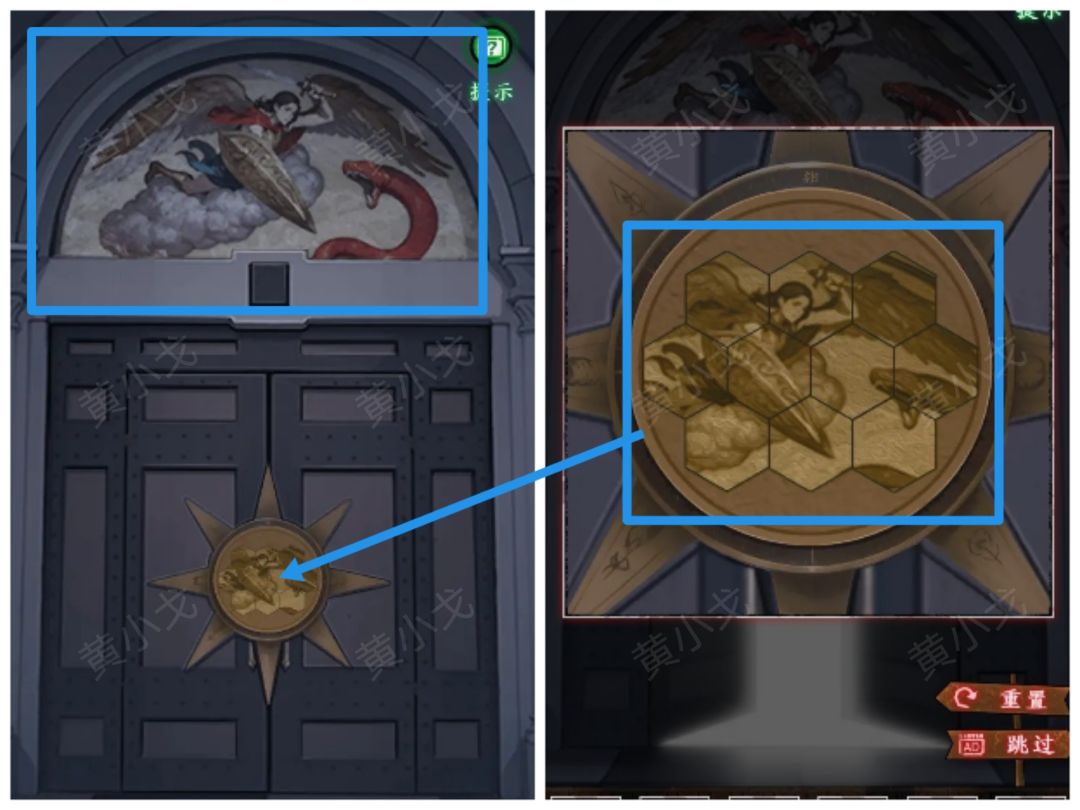 20.点击门上的机关,根据门上的图,完成拼图,打开门