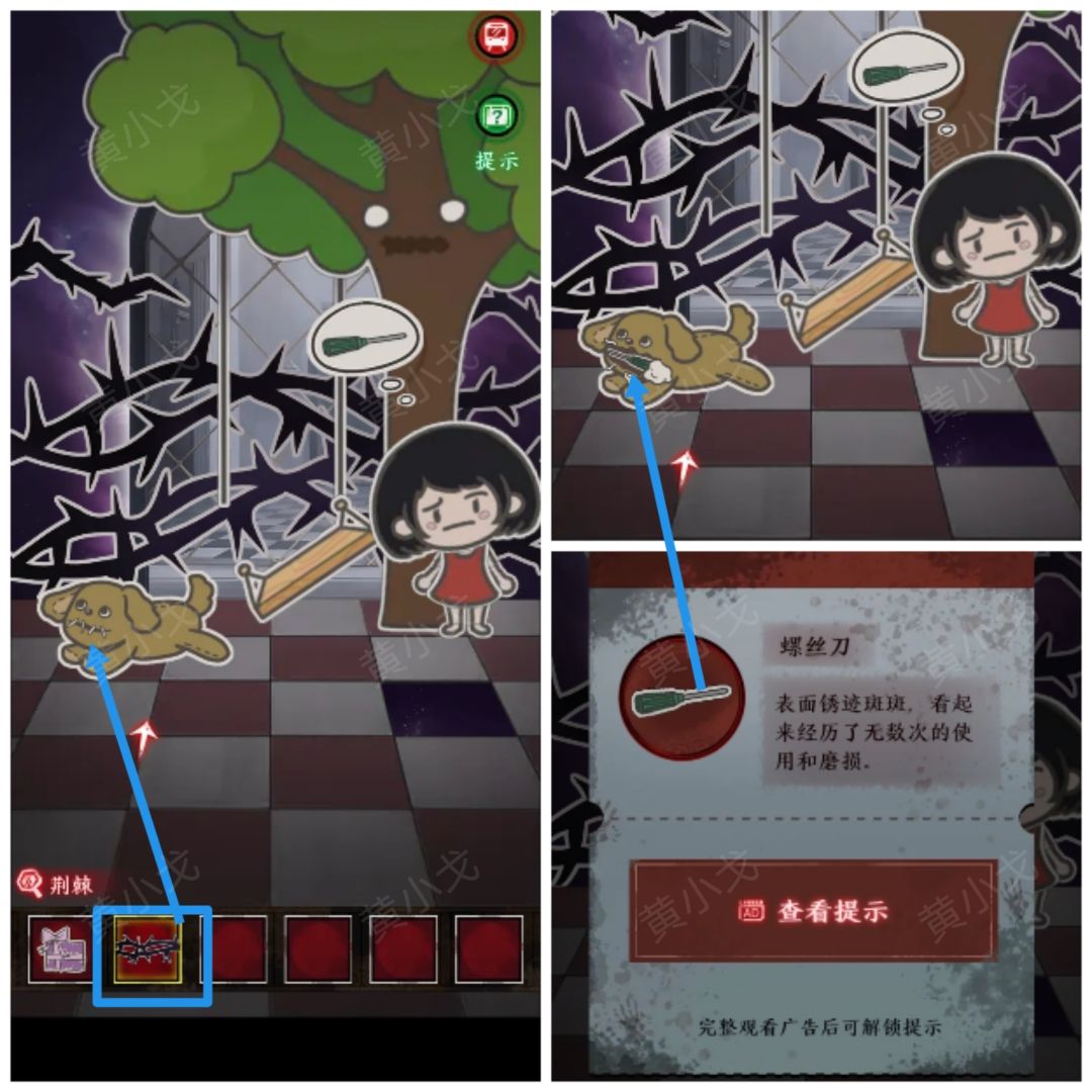 7.用【荆棘】割开小狗的嘴巴,获得【螺丝刀】