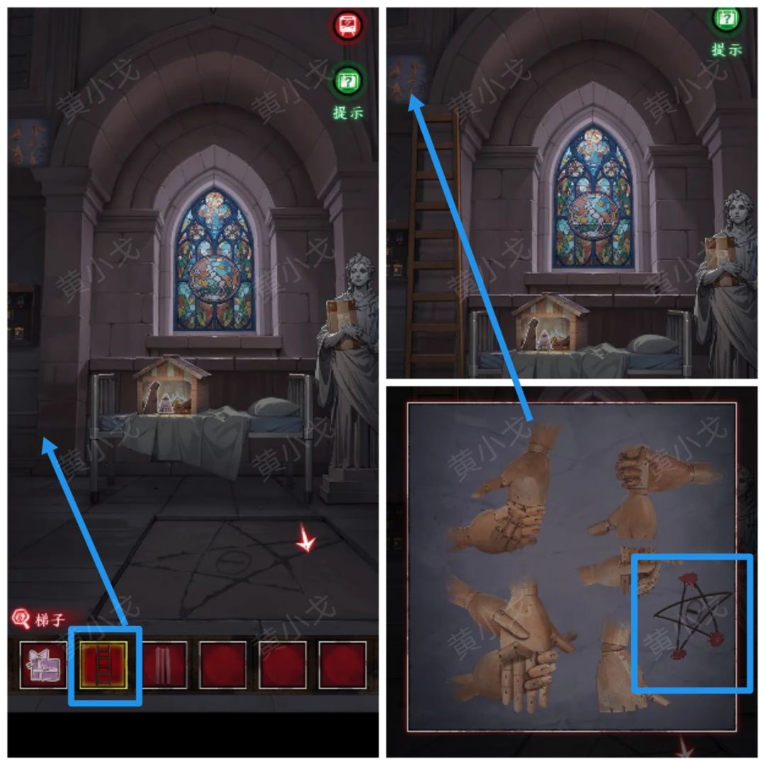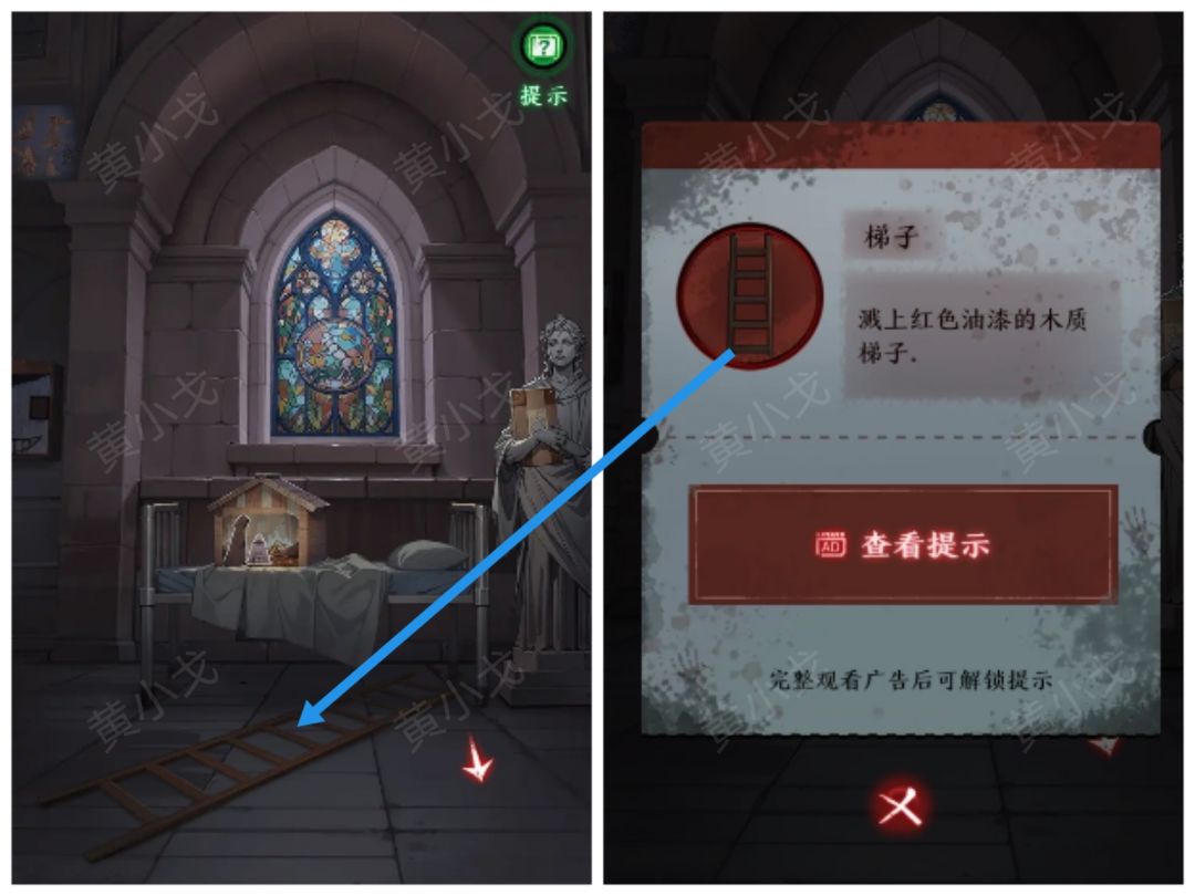 16.把【梯子】放到画下方,点击查看画上的线索(注意五角星上红点的位置)
