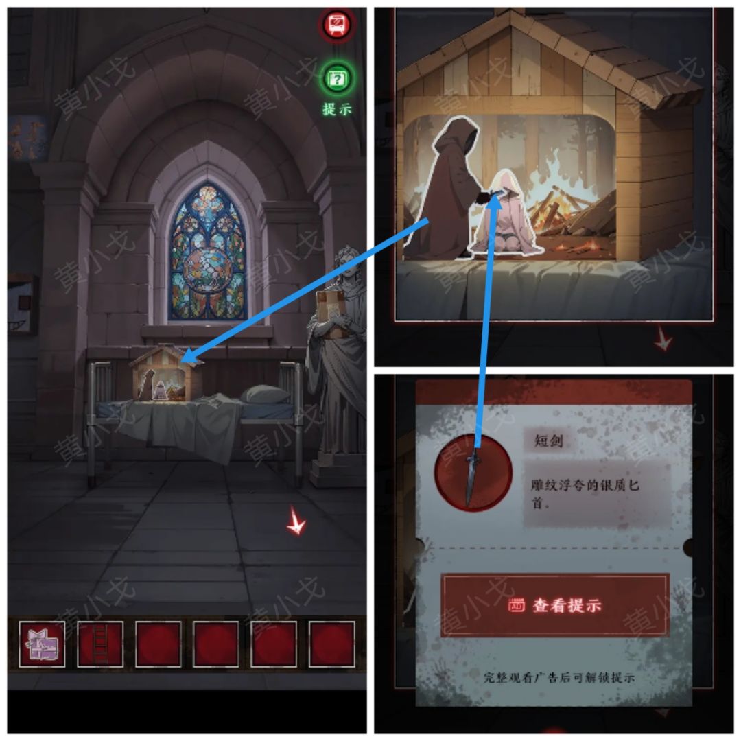 12.点击雕像,拿【短剑】给她,获得【石制眼球】