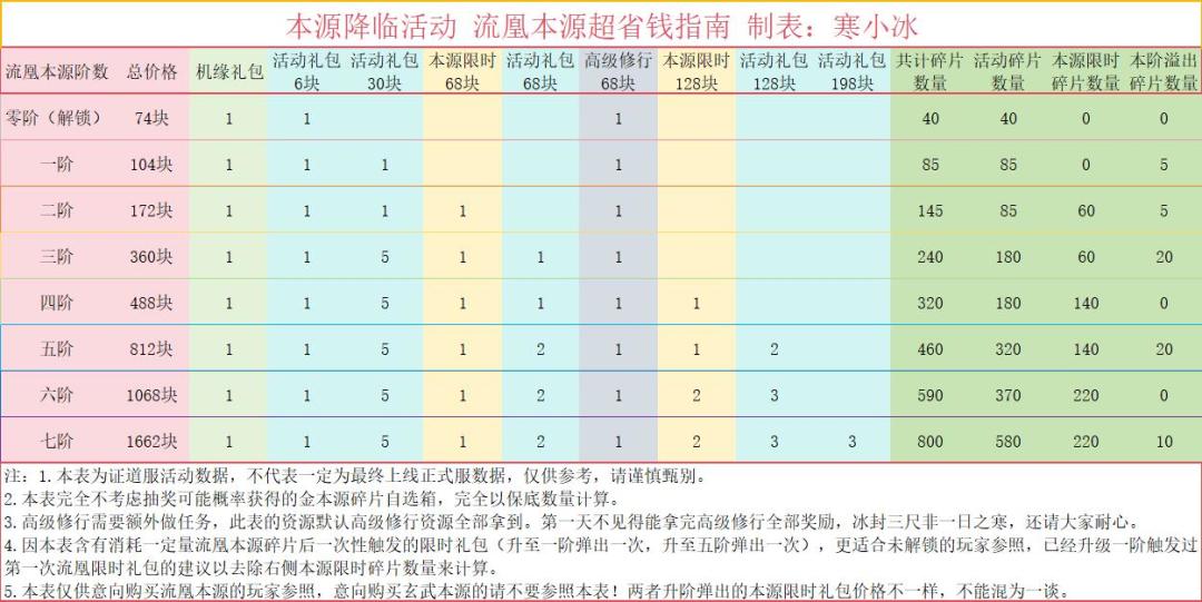 与隔壁攻略大神桃酥甜糕的活动攻略相比,本文的创新点在于:桃酥甜糕姐的攻略只针对活动本身,只计算了通过活动可以获取的本源碎片;而此指南不仅计算活动获取的本源碎片,还同时考虑了升阶流凰本源会弹出的限时礼包,通过活动碎片和限时礼包双管齐下,极大降低了高阶流凰本源的成本,实现了性价比方面的重大突破。