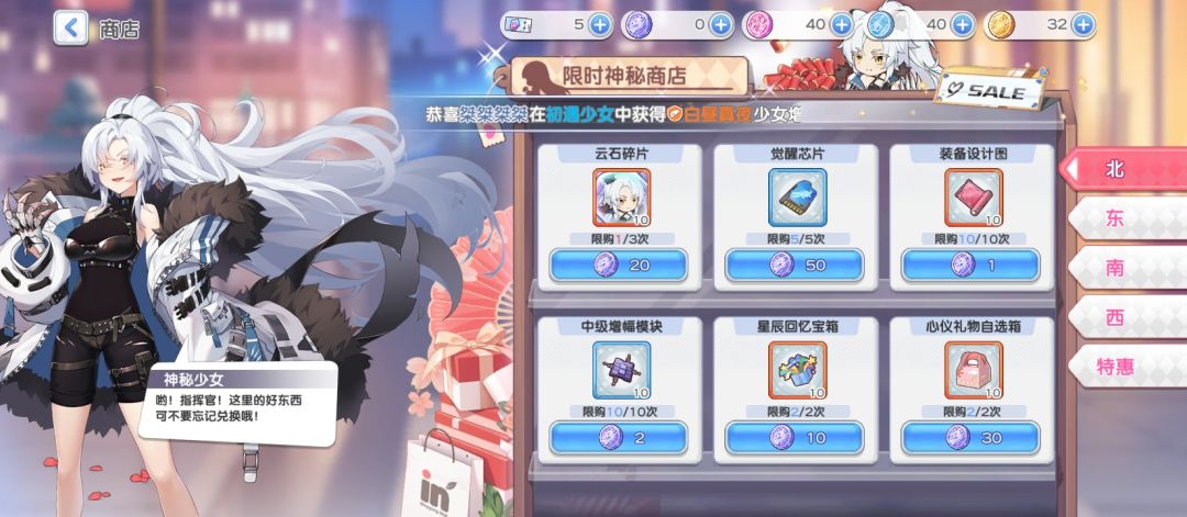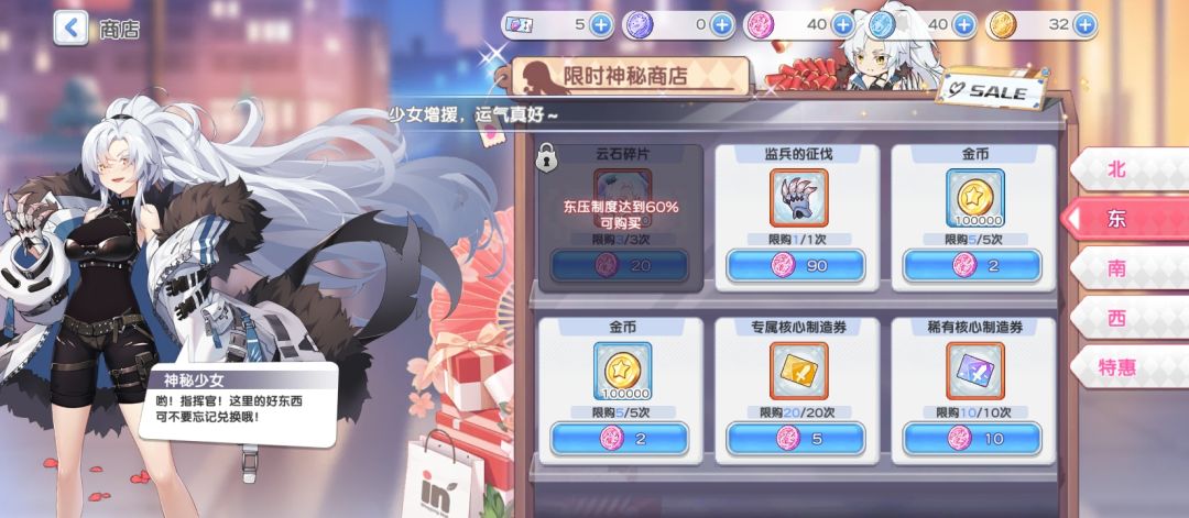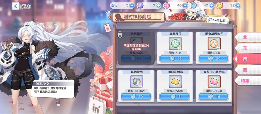 ❷第一天压制值上限为40,体力没溢出的话可以等第二天再通关4副本的中等难度(0充党需要省体力,具体可见后续体力规划),如有溢出尽量扫荡最副本北或南(这两个副本货币可以兑换的奖励好点,而且材料给紫星和蓝星);