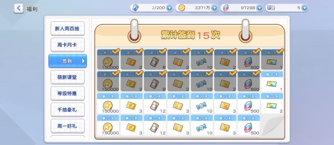 签到体力:12×25=300(以本人举例)