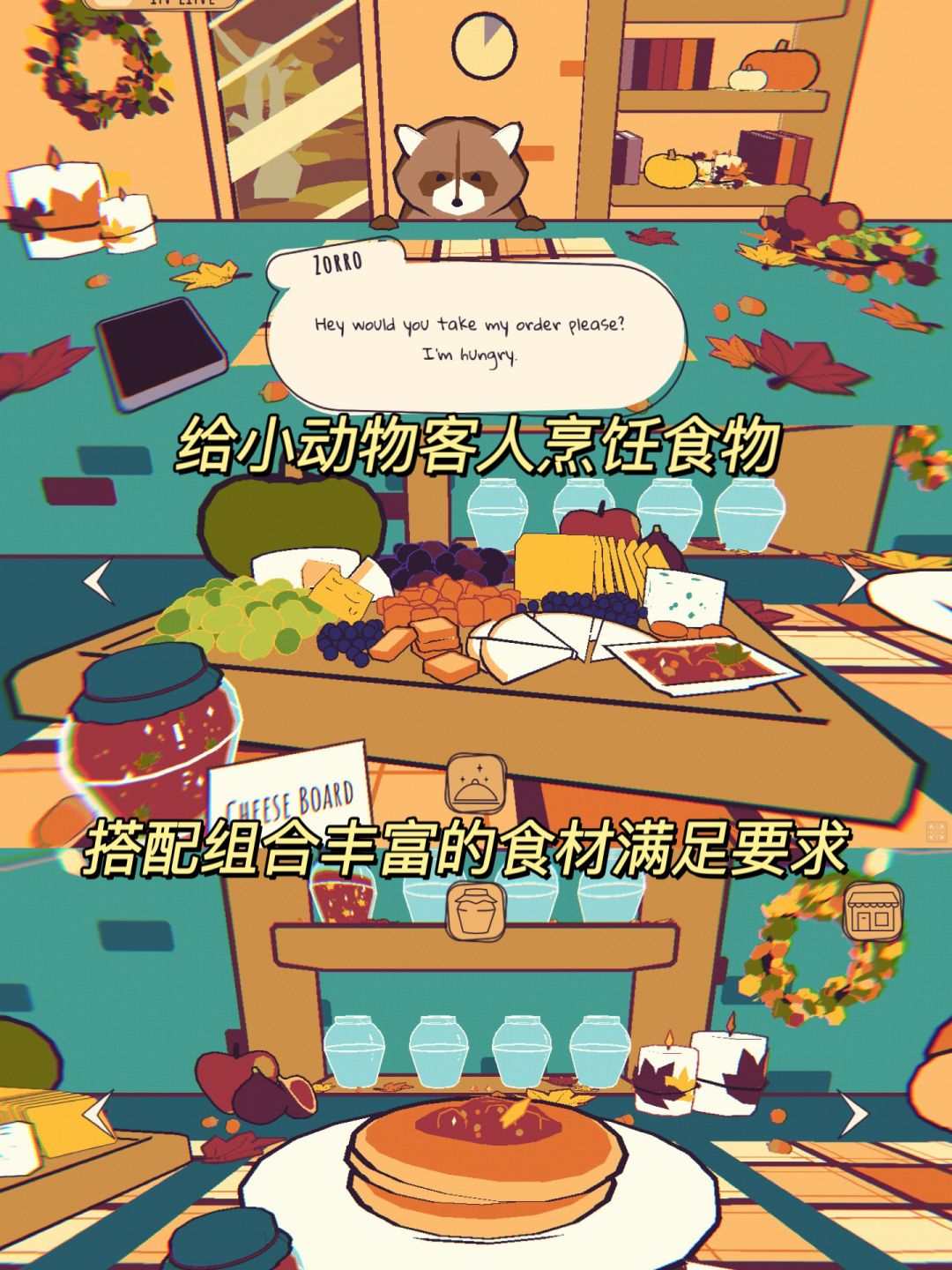 为可可爱爱的森林小动物们制作美味可口的🥙料理,要记住每一位客人的偏好和口味,记不住的时候可以随时查看手机,还可以钓鱼🎣哦。