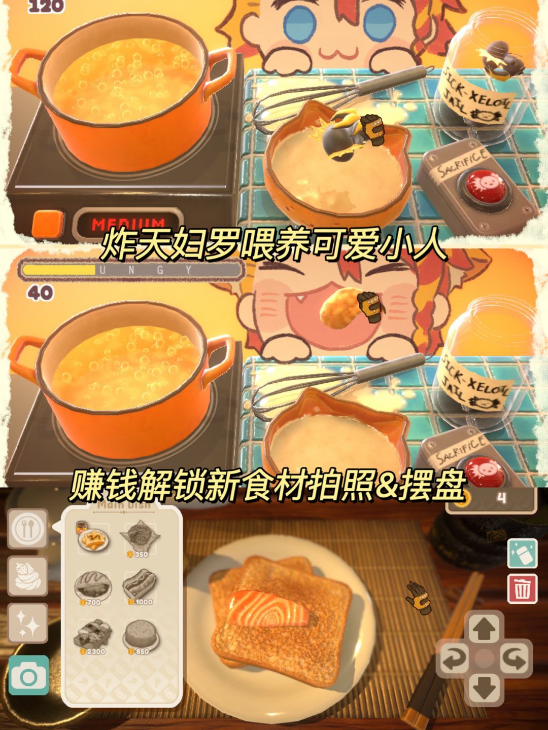 炸天妇罗🍤喂养Axel,然后赚到钱购买新的食物来装饰和摆盘,炸天妇罗的体验很真实,而且投喂Axel的时候表情敲可爱,拍照模式可以自己DIY食材,建模超级逼真(尤其是三文鱼🍣还有丰富的油脂),大半夜真的看饿了!