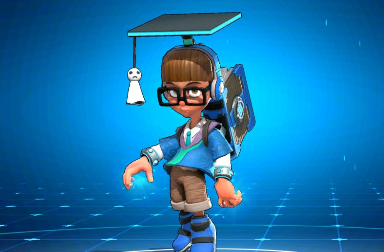 如此一来,一个博学多才的小正太形象就差不多形成了。为了做一些特点的细化,美术小哥又将他的帽子改为了博士帽,博士帽的帽穗改成了晴天娃娃来彰显他“孩子气”的一部分,而书籍就已到了身后作为支持他飞行的道具外形,往里又加入了不少科技感满满的元素,飞书学霸的形象就此锚定了。