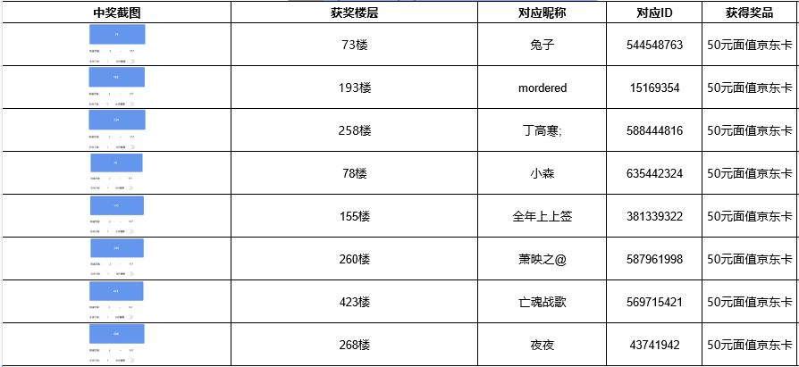 活动截至时有效楼层为557楼,经随机数抽取获取获奖楼层和名单如下: