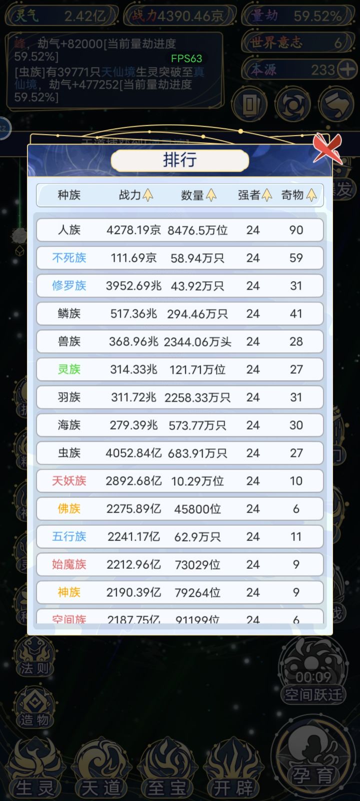 后期没有本源选项我就选择孕育种族,就出现了所有种族。